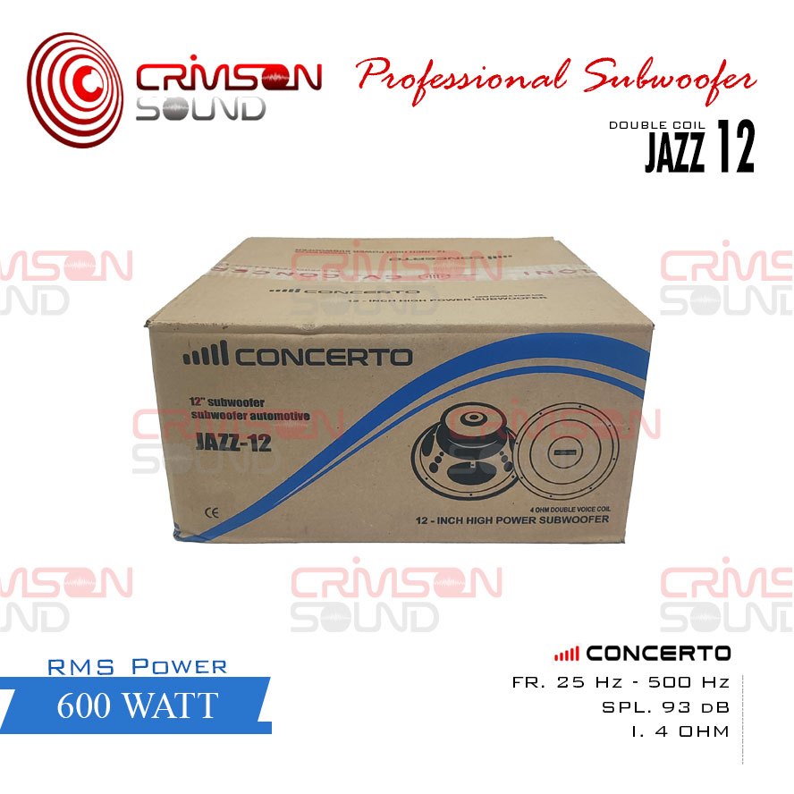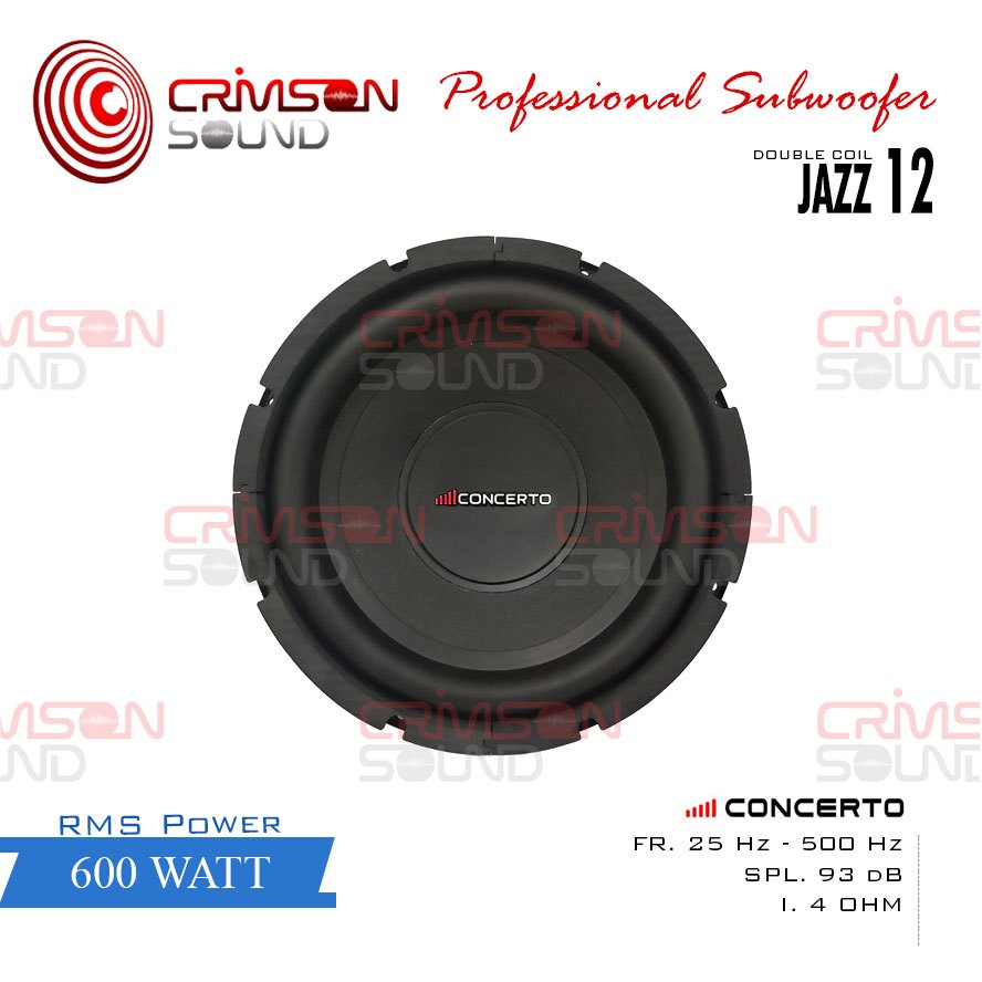 SUBWOOFER SPEAKER 12 INCH 600 WATT DOUBLE COIL CONCERTO JAZZ 12