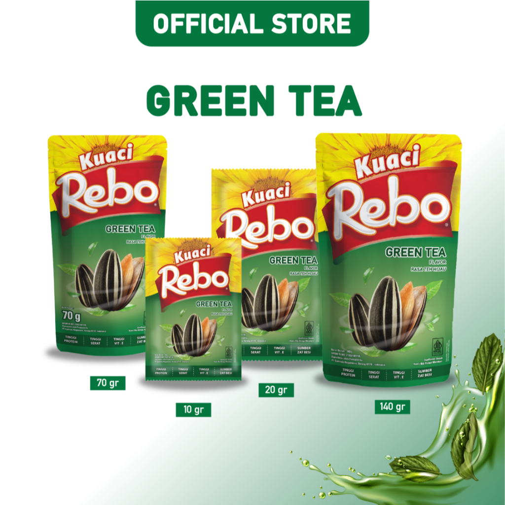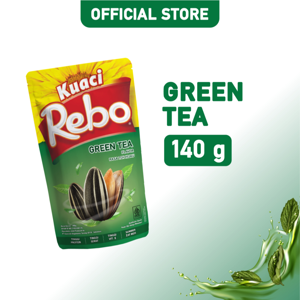 Rebo Kuaci Rasa Green Tea 120/140 Gram 1 Dus (Isi 48 Pcs)