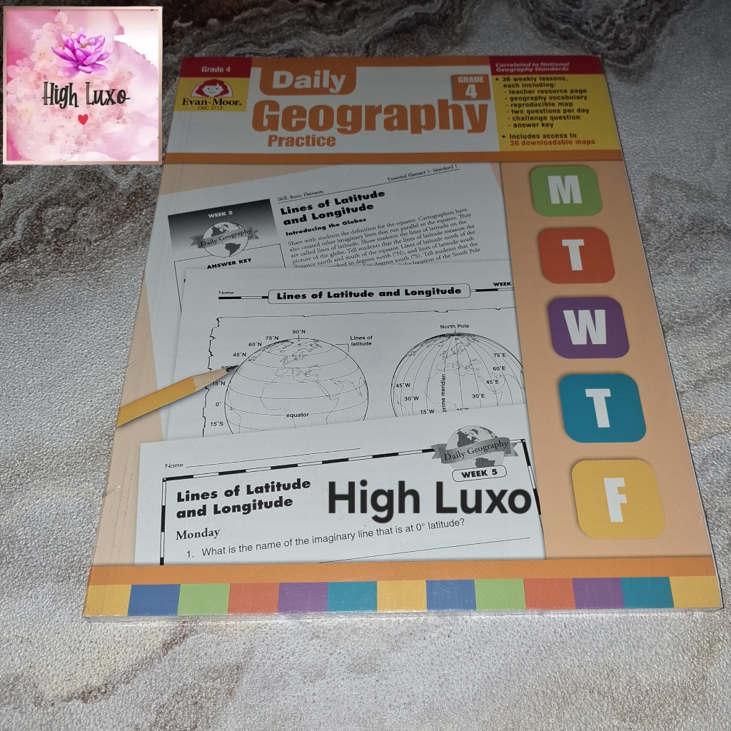 Buku Evan-Moor Daily Geography Practice Grade 4 Homeschooling and Classroom Resource Workbook Reproducible Worksheets Teaching Edition Downloadable Maps USA World Continents Oceans Countries English Book IMPOR IMPORT ORIGINAL AUTHENTIC BAHASA INGGRIS