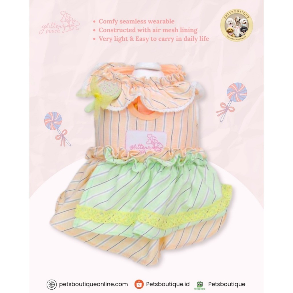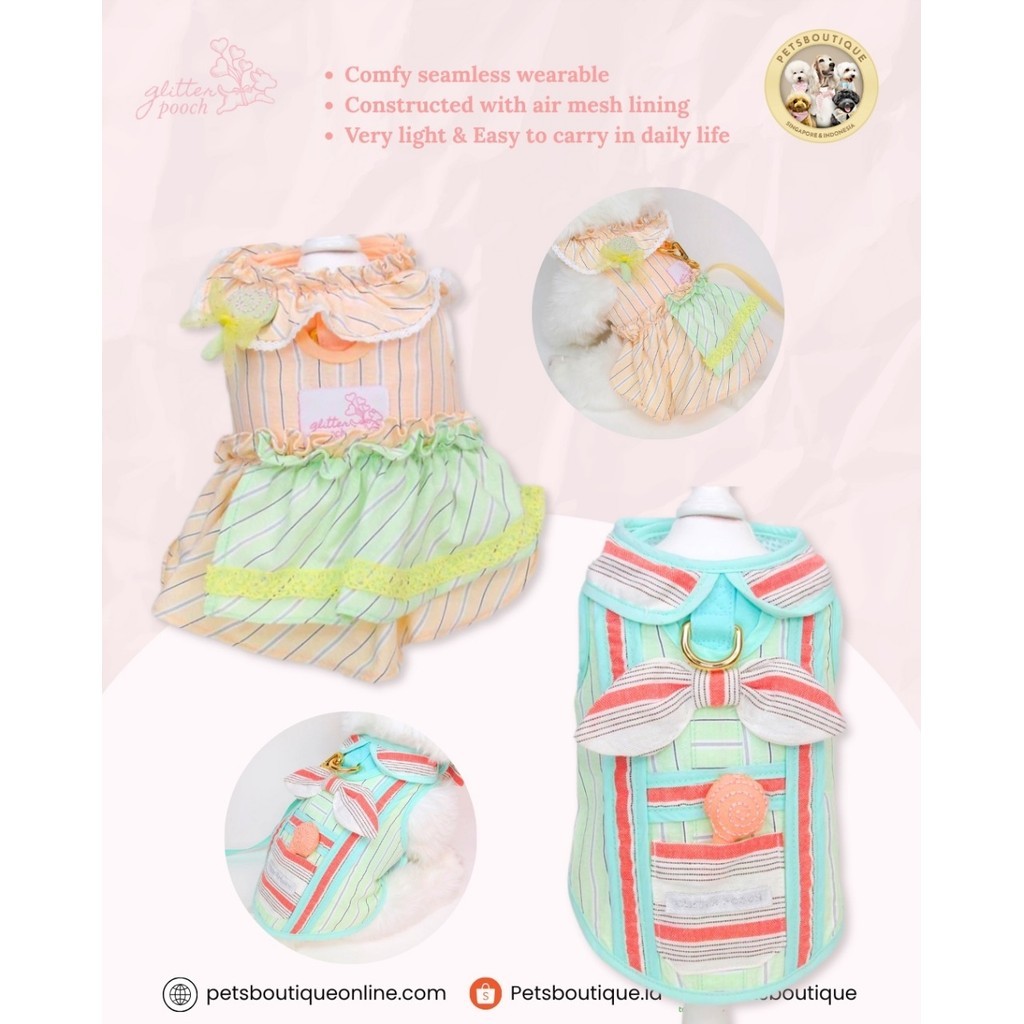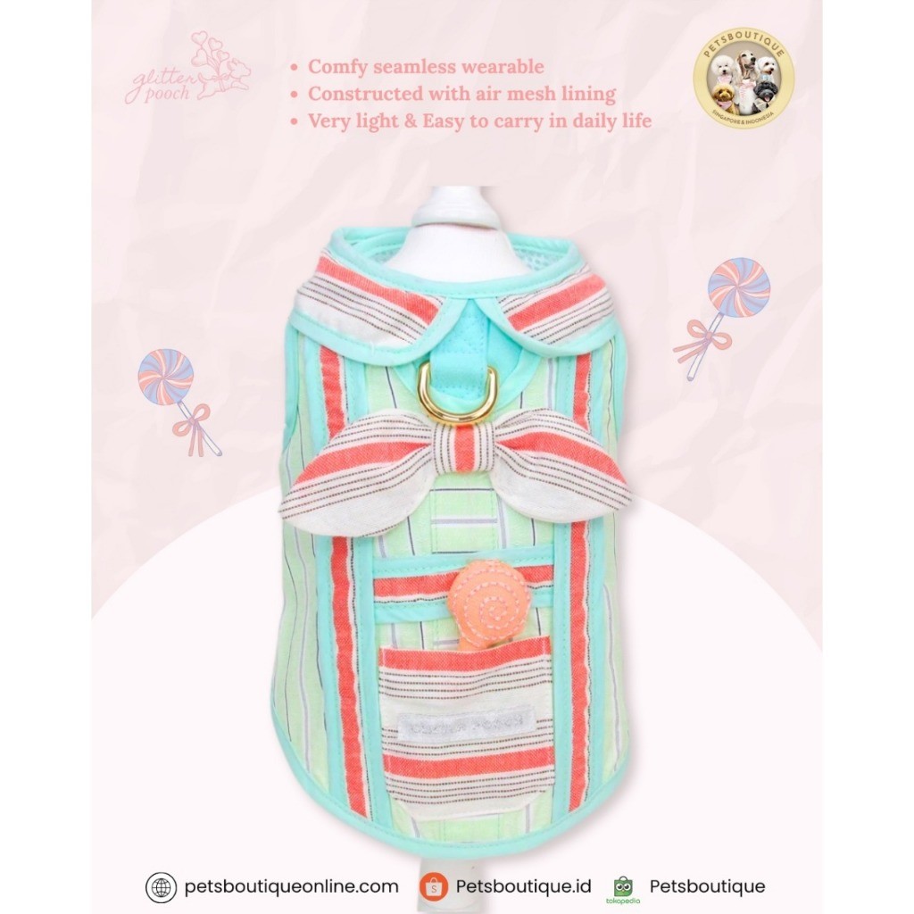 Harness anjing kucing tali import - Candy Stripe Couple - Tali tuntun anjing