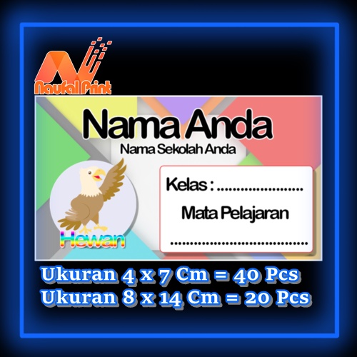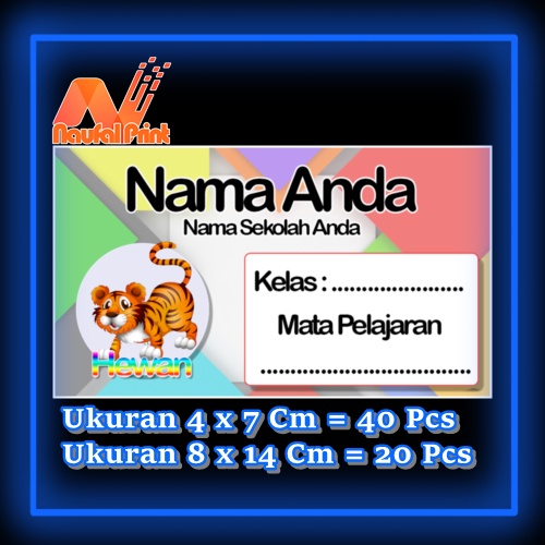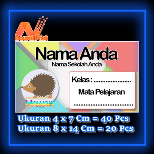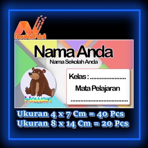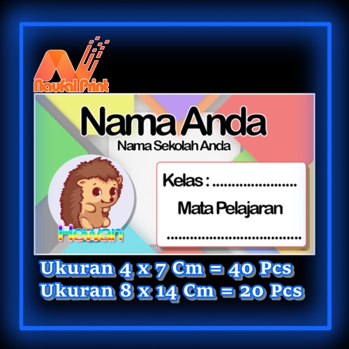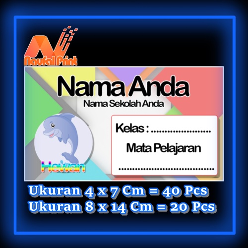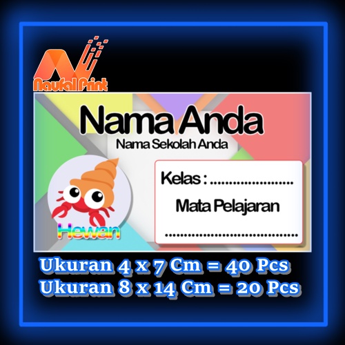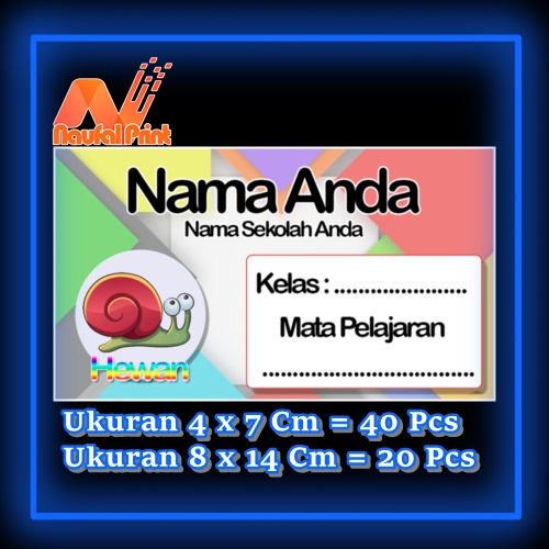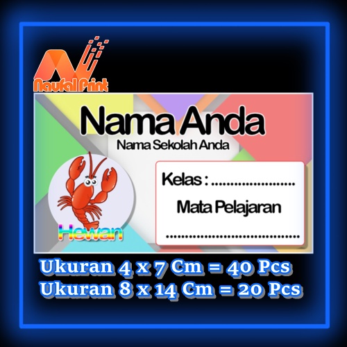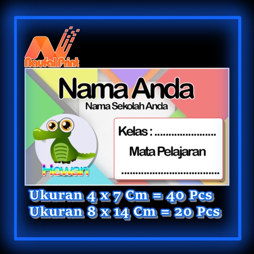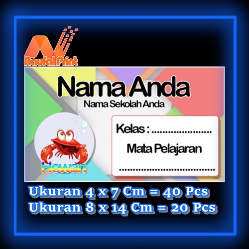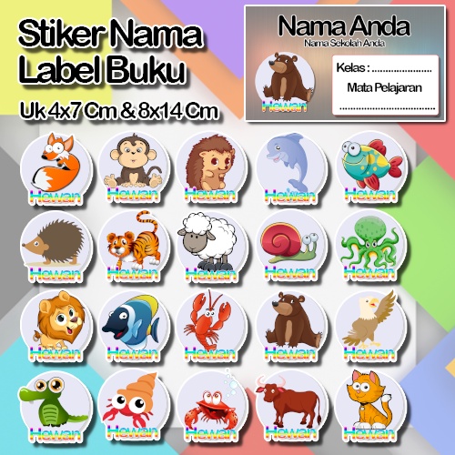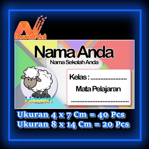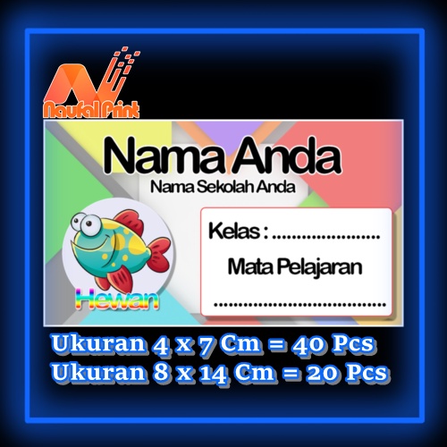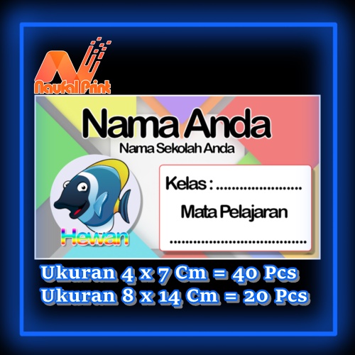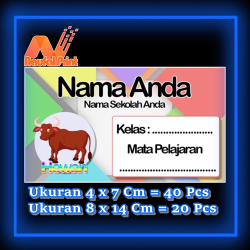 Stiker animasi kartun kerbau ikan kambing ikan Karakter Lucu Custom Lebel Nama cromo murah 20 Varian berbeda Sticker Pelajaran Mapel buku anak sekolah No 8