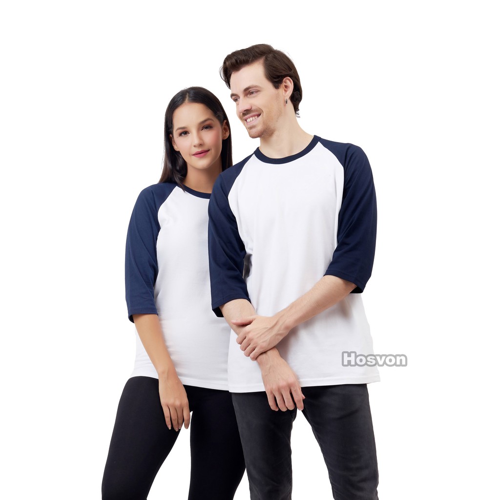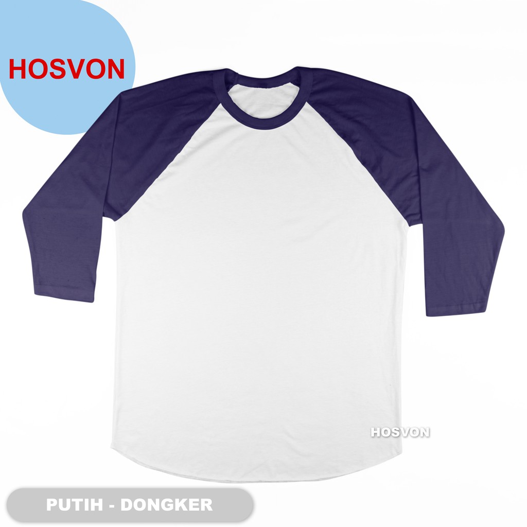 PUTIH - NAVY Raglan Lengan 3/4 COTTON COMBED 20s (PRIA & WANITA)