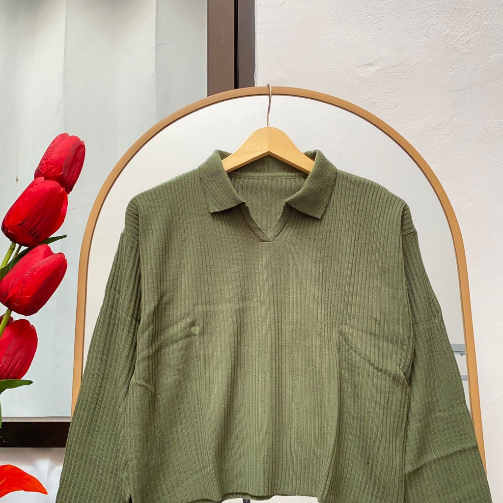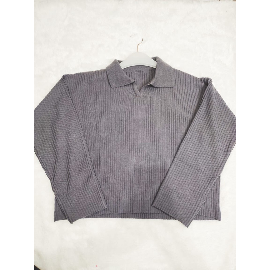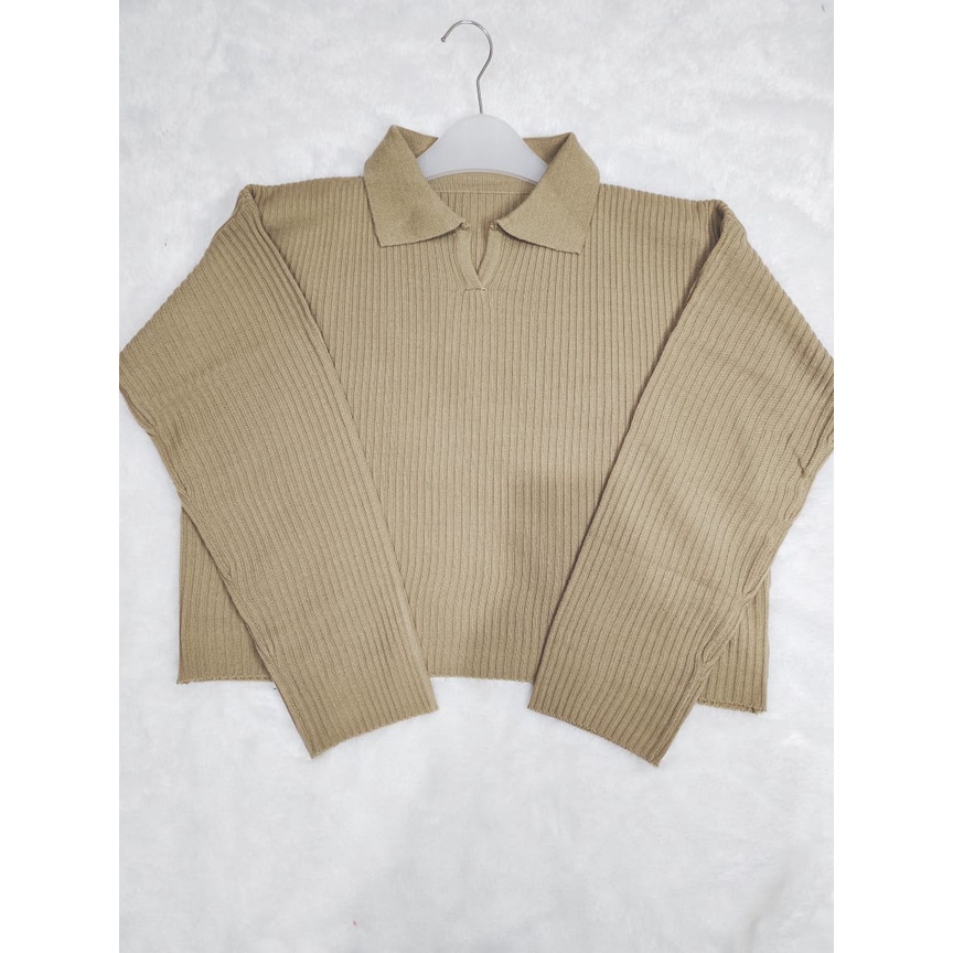 KNIT CROP RAJUT BLOUSE ATASAN WANITA KERAH POLO