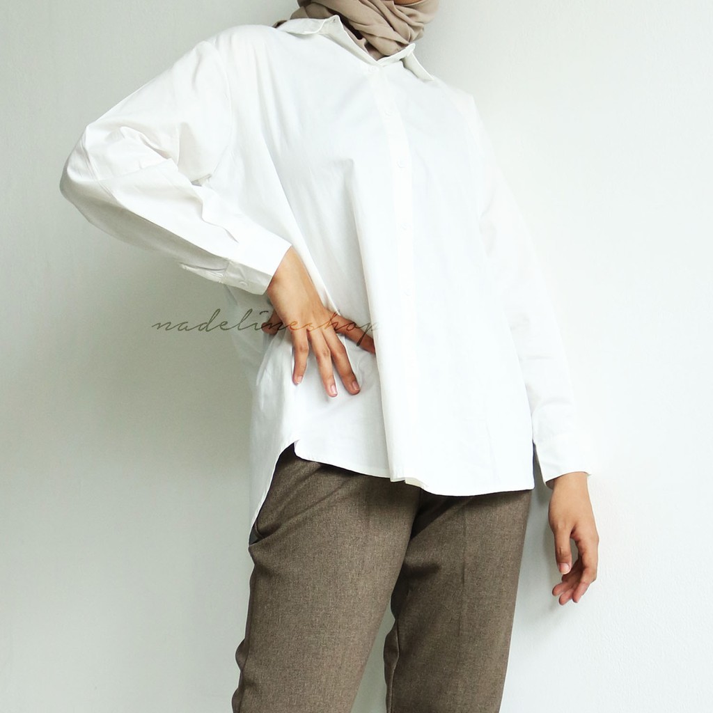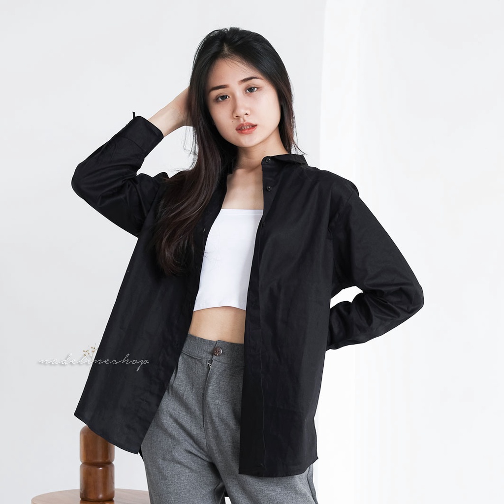 Kemeja Basic Wanita Polos Oversize Bahan Linen & Katun - Kara Shirt (BASIC SERIES)
