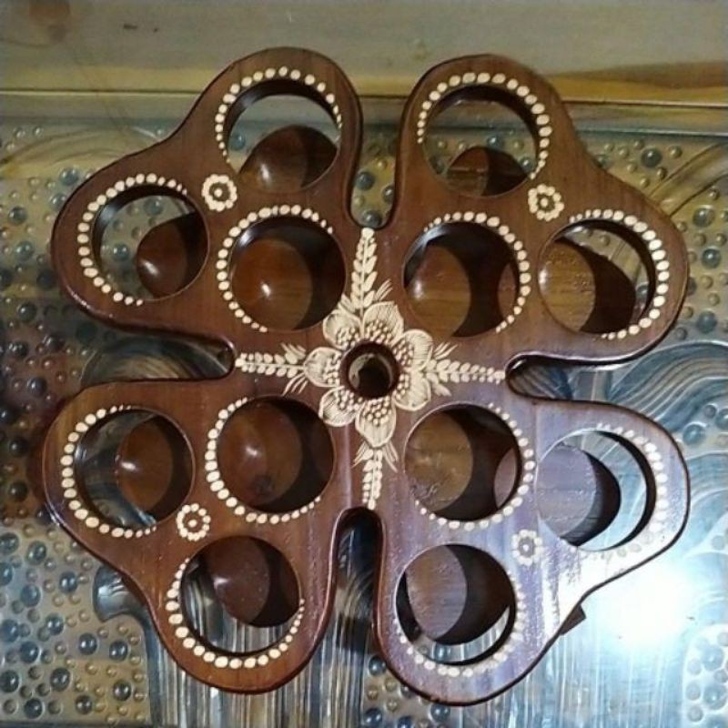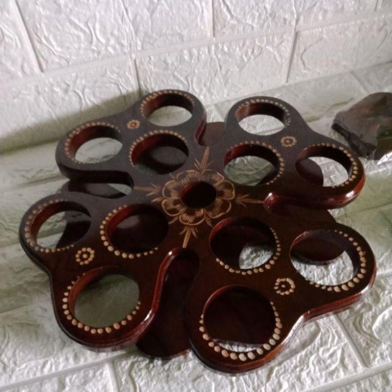 Tempat Air Aqua Gelas Meja Tamu Dari Kayu Jati Asli 12 lubang
