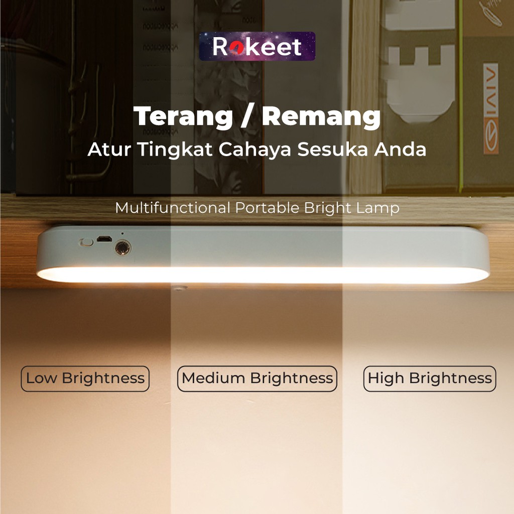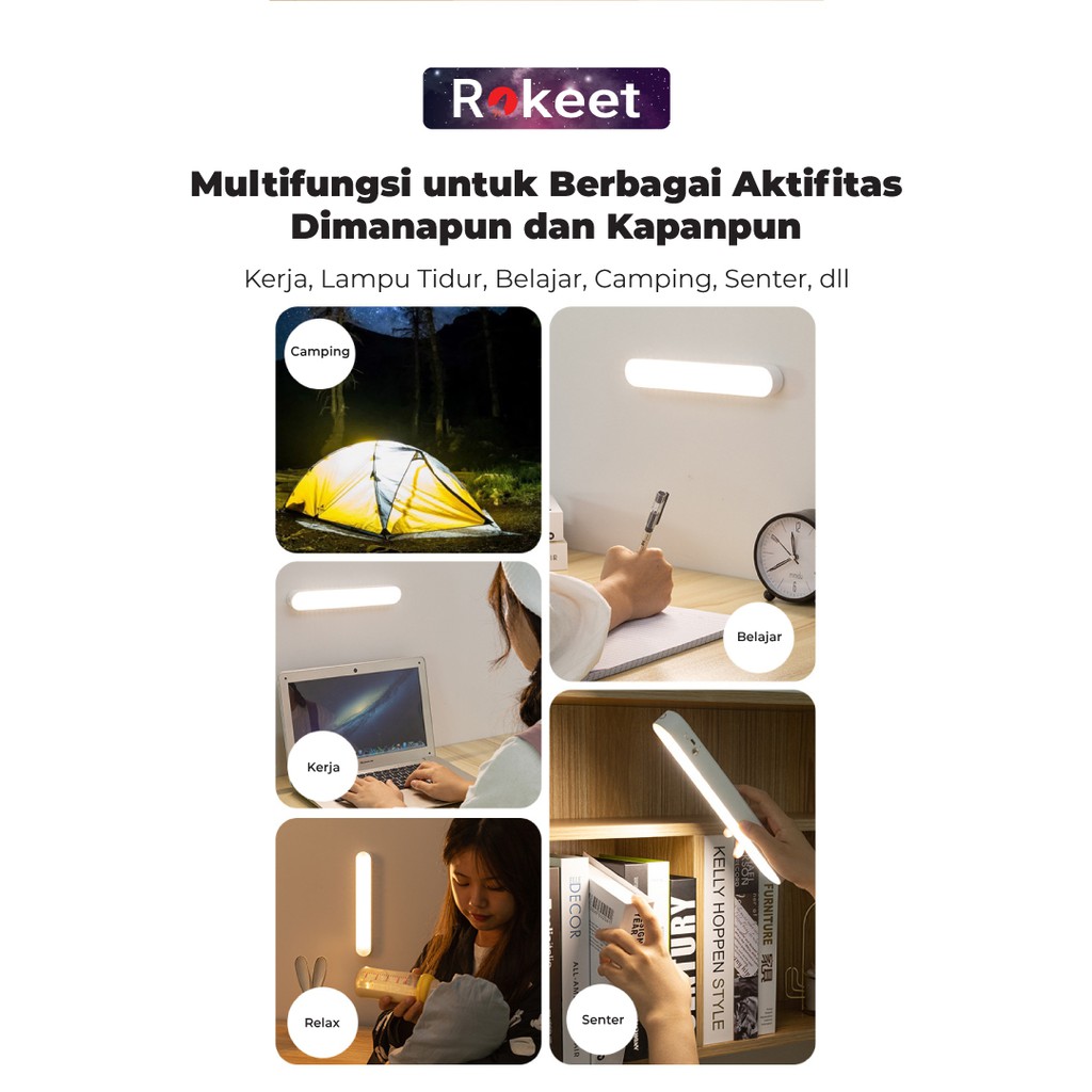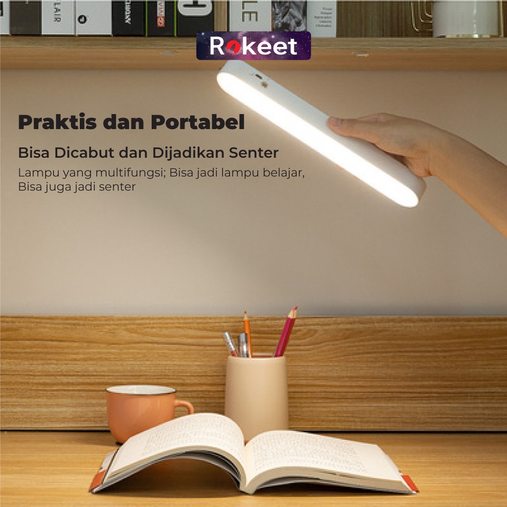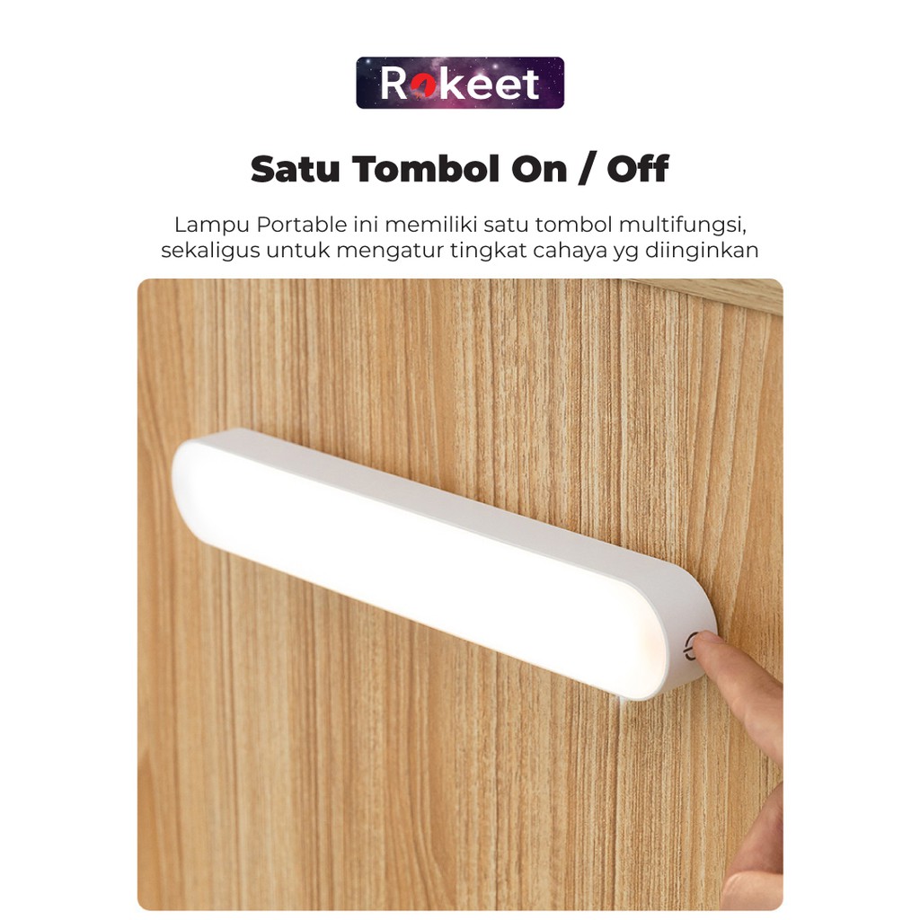 Rokeet Lampu Dinding LED Panjang Tidur Magnetic Wireless Minimalis Kamar Rumah Recharge