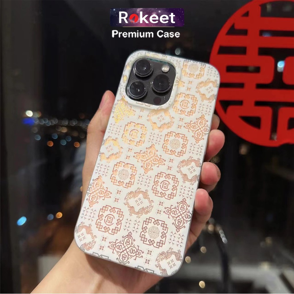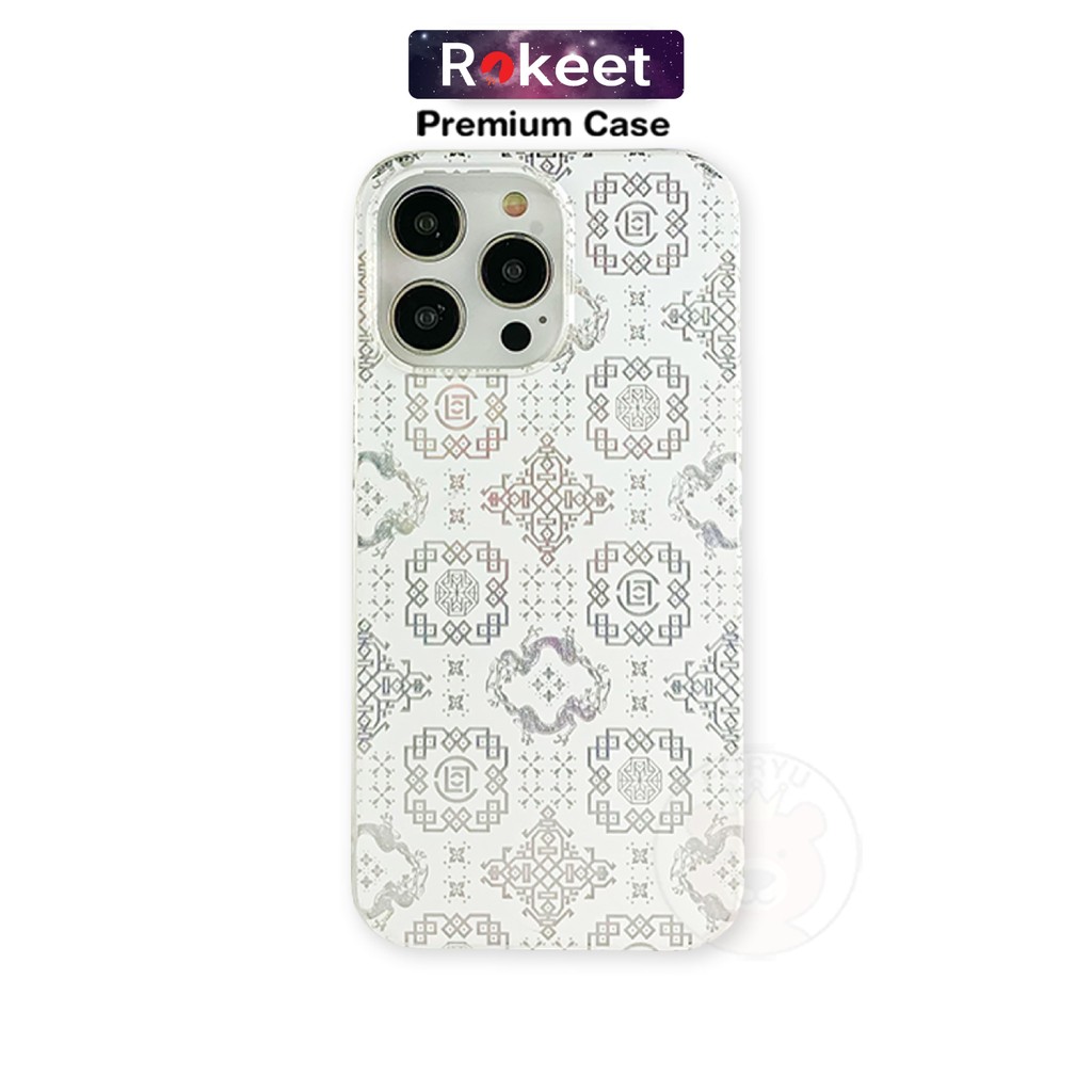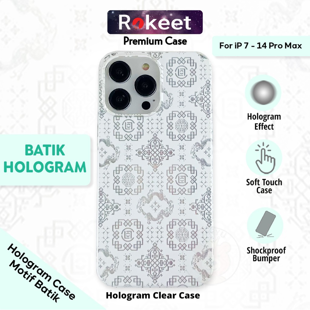 Rokeet Hologram Case Clear Transparan Cover Soft Case Motif Batik untuk iPhone 7 8 Plus XR X XS Max 11 12 13 Mini 14 ProMax