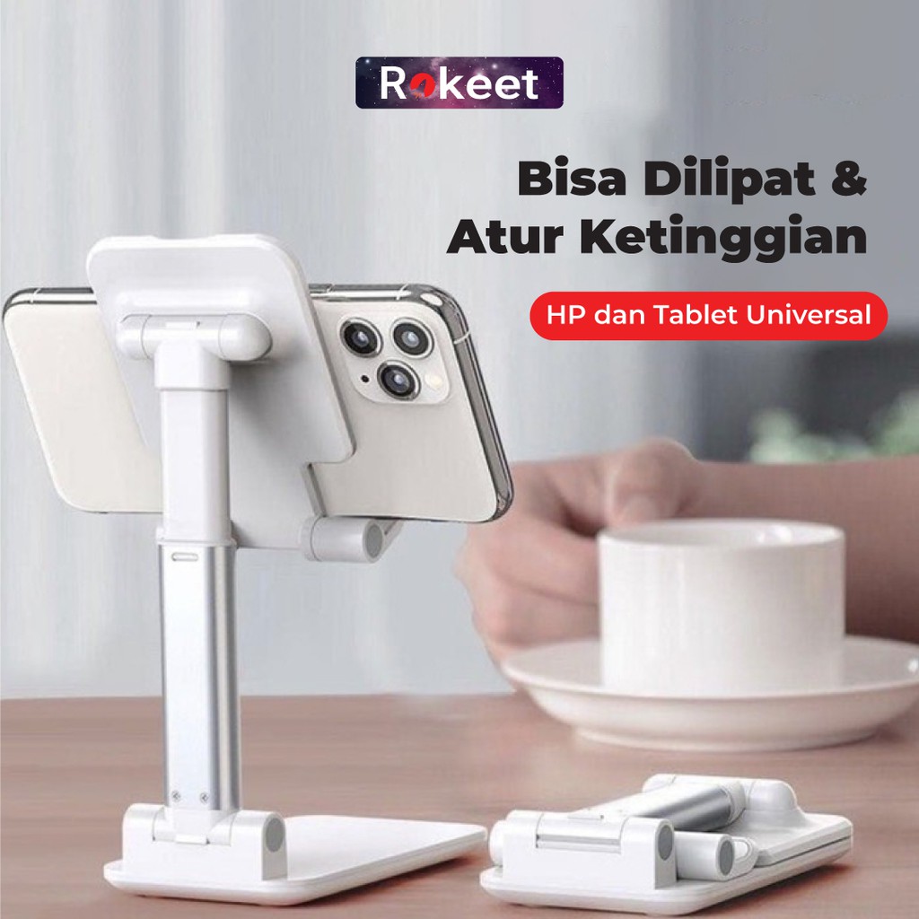 Rokeet Stand Holder HP Folding Desktop Phone Stand Lazypod Handphone Tablet Universal