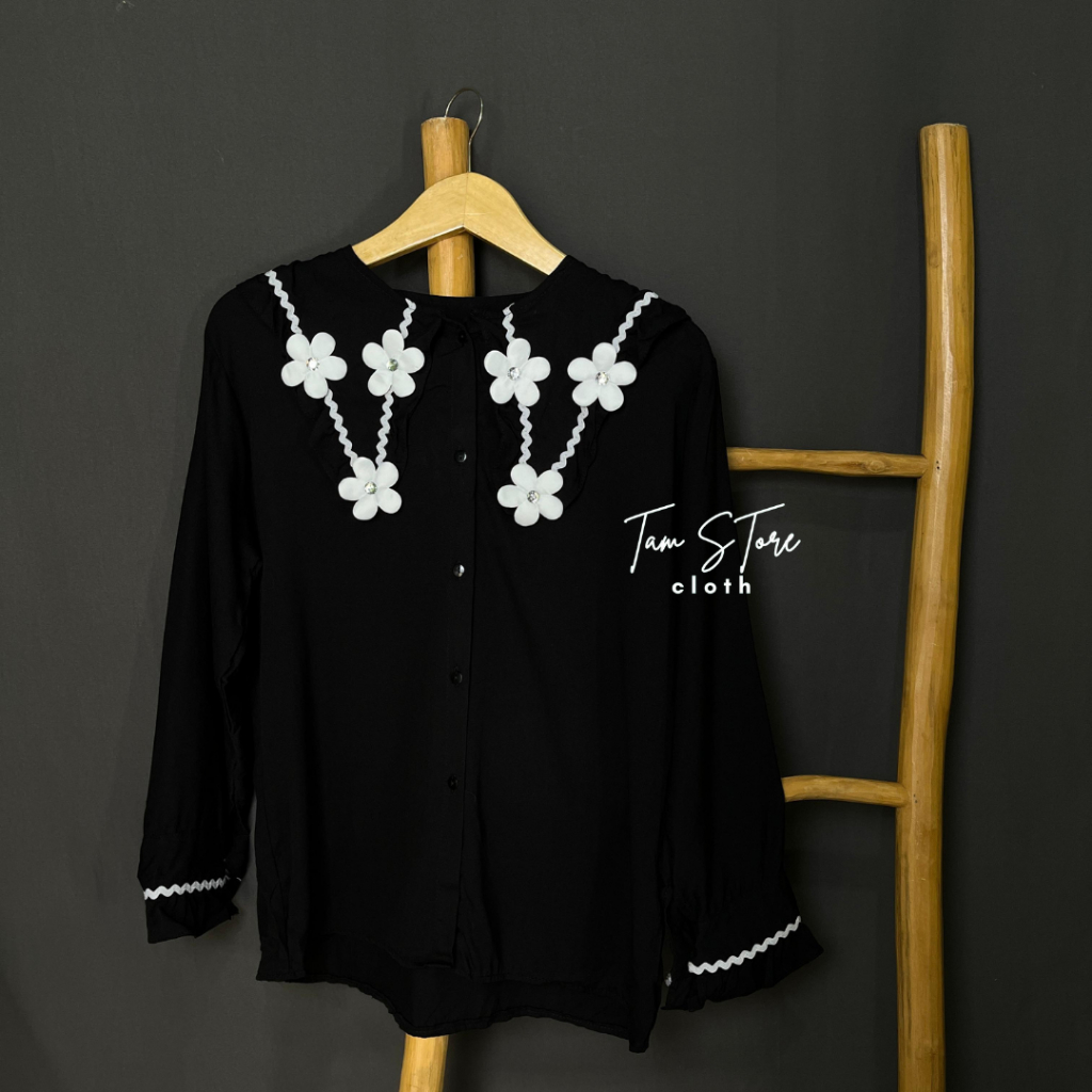 Stevani Kemeja Blouse Linen Wanita Kerah Collar Variasi Bordir Bunga Fashion Muslim Wanita