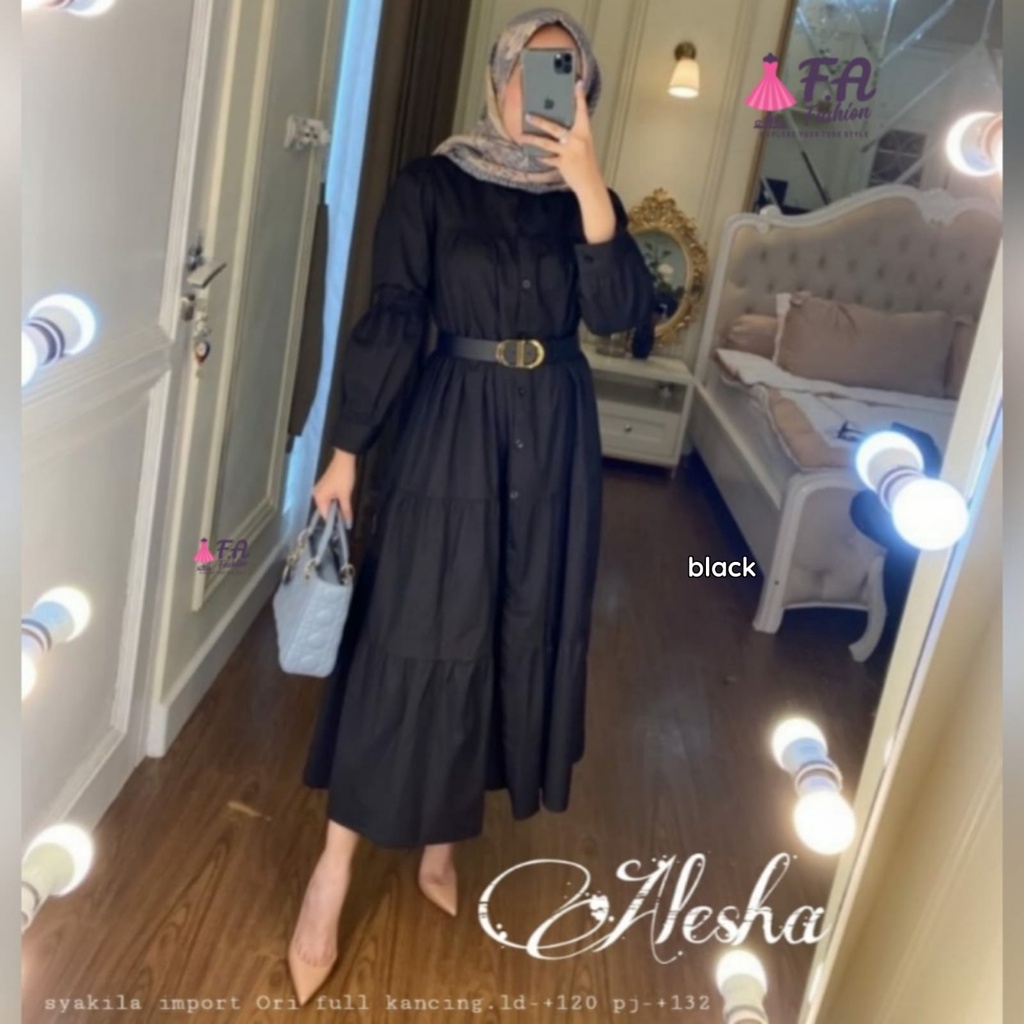alesha midi jumbo dress pakaian baju gamis dres gaun longdres maxi maxy bigsize ld 120 big size polos busui friendly frendly wanita cewek cewek dewasa muslimah perempuan remaja ori elegant premium original modern fashion murah kekinian terbaru