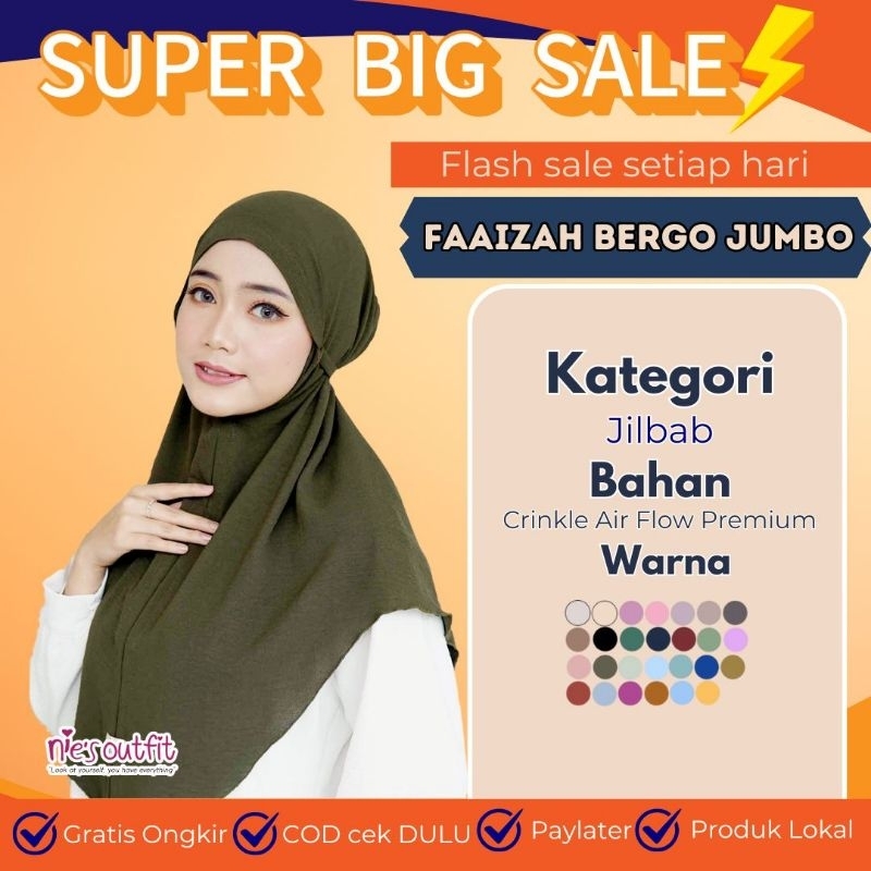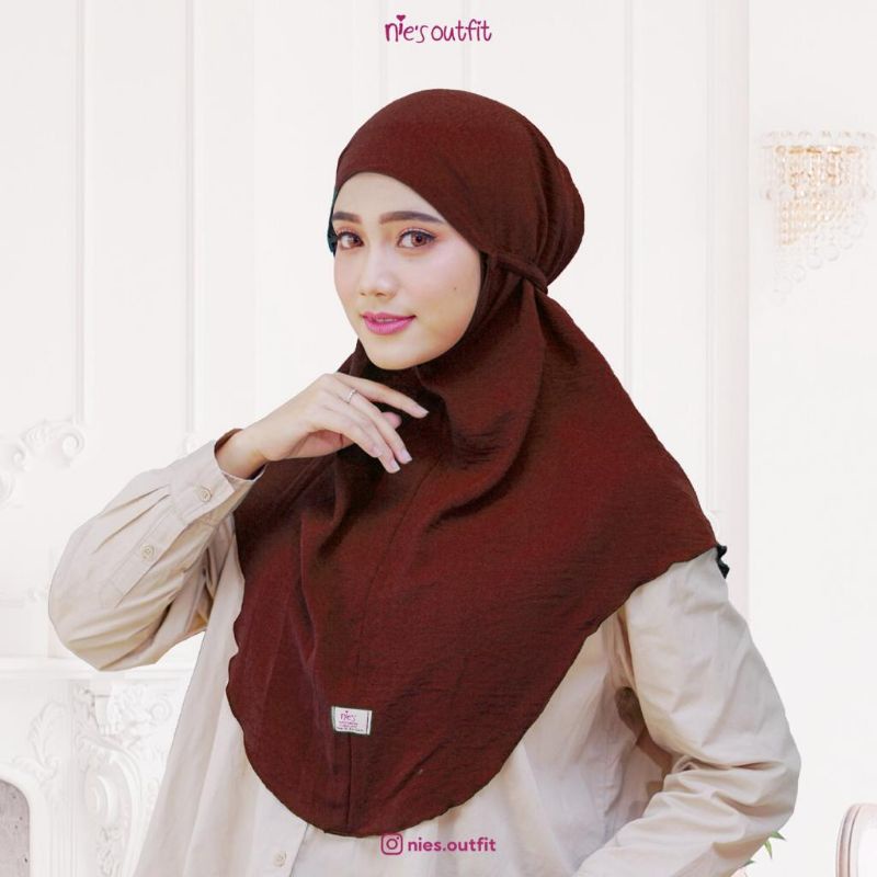 Hijab Instant NIES OUTFIT FAAIZAH Kerudung Bergo Jumbo Ikat Bahan Crinckle Airflow Rayon Premium Fashion Muslim Wanita
