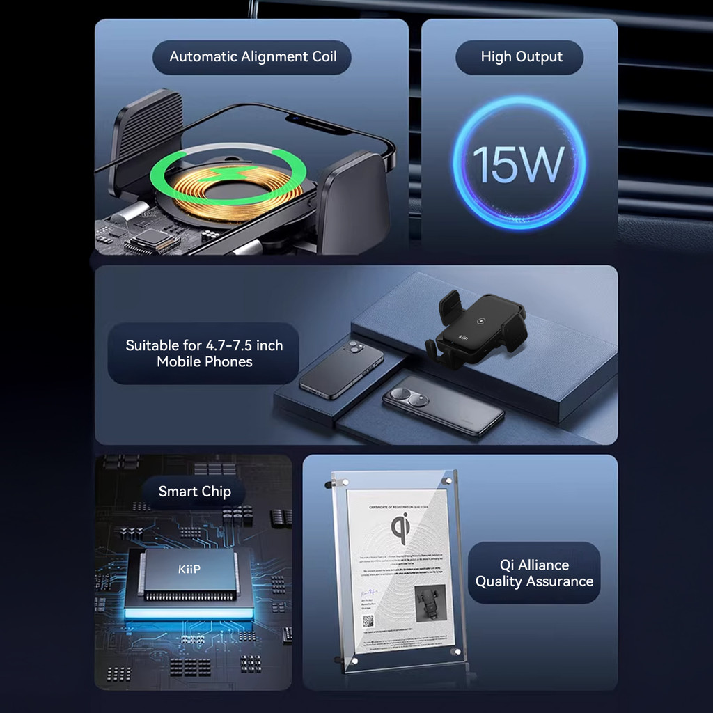 KiiP WC01 2in1 Car Mount Wireless Charger Phone Holder Mobil Car Charger 15W
