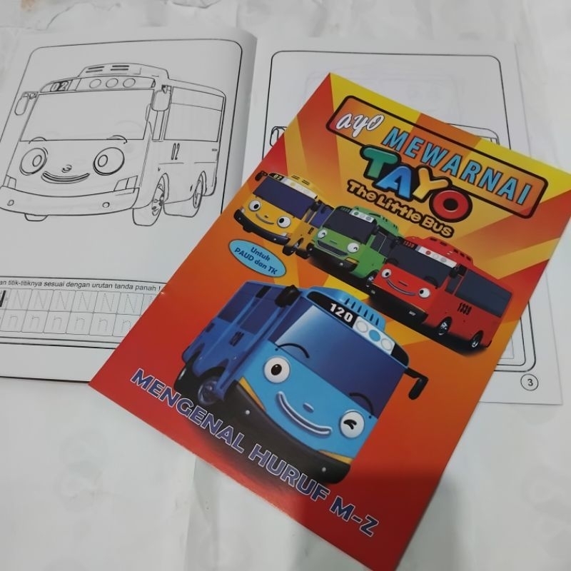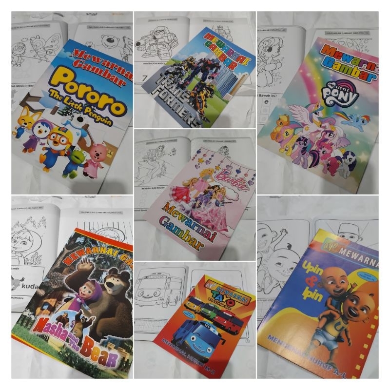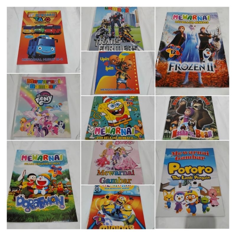 Buku Belajar Mewarnai Gambar Tayo,upin ipin,Kartun,Animasi,Super Hero, Ukuran Besar
