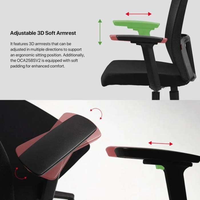 FANTECH OCA258S V2 OFFICE CHAIR ARM REST 3D SOFT KURSI KERJA KANTOR OC A258S V2 OCA258SV2 Black