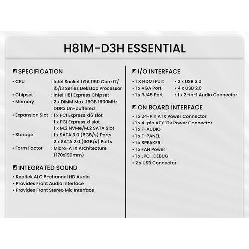 MOTHERBOARD VURRION ESSENTIAL H81M-D3H Intel H81 LGA 1150 DDR3