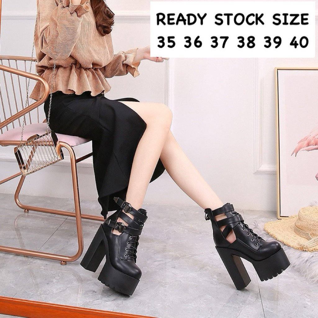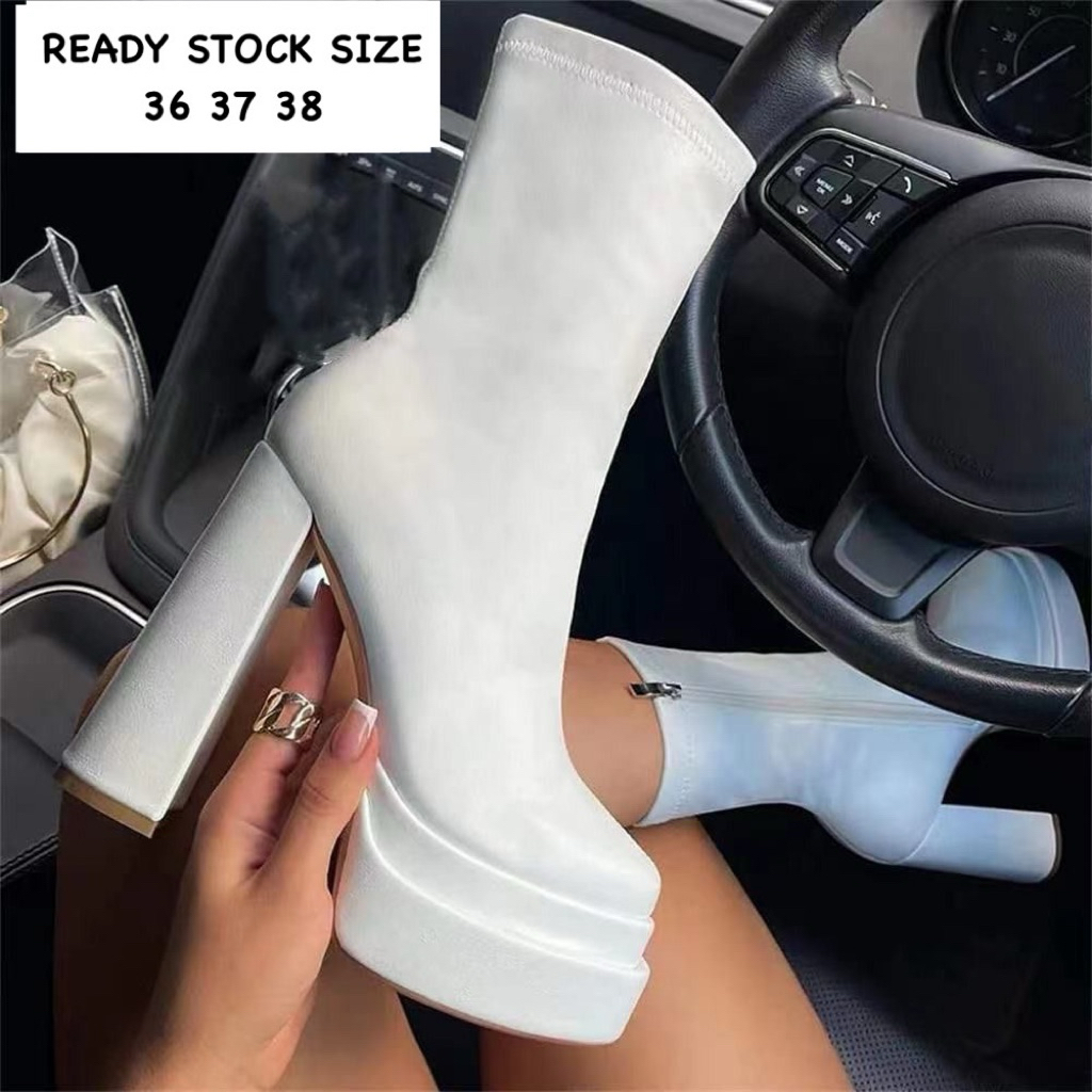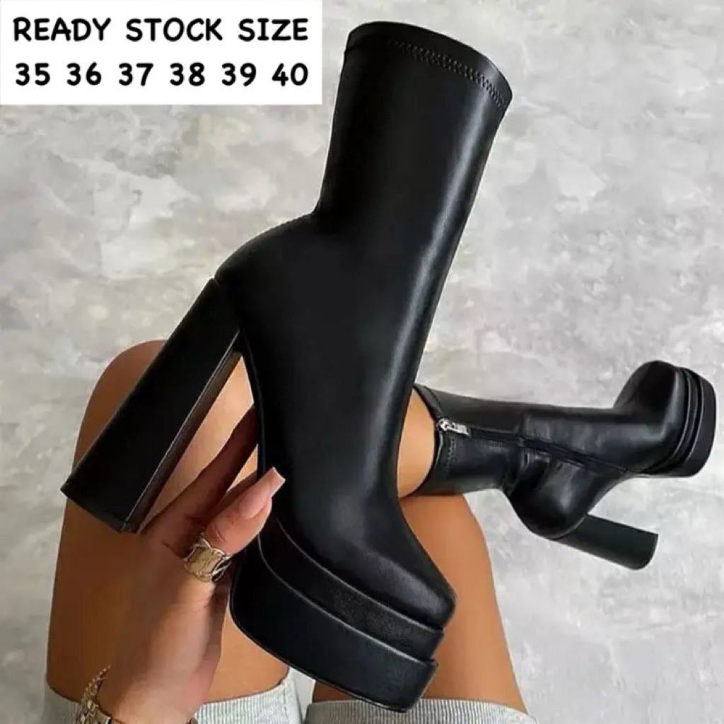 READY STOCK SIAP KIRIM SEPATU BOOTS FASHION WANITA IMPORT SEPATU PANGGUNG DJ SINGER BOOTS WANITA CHUNKY HIGHEELS SHOES 2026