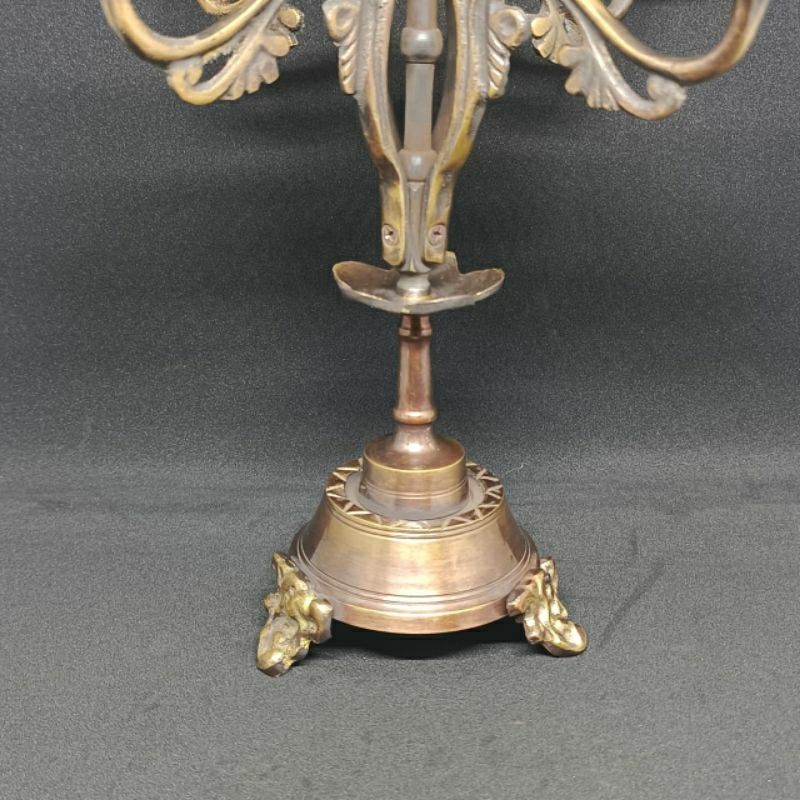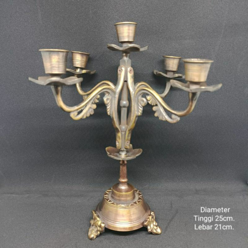 Tempat Lilin Kuningan Cabang 5 Motif Daun