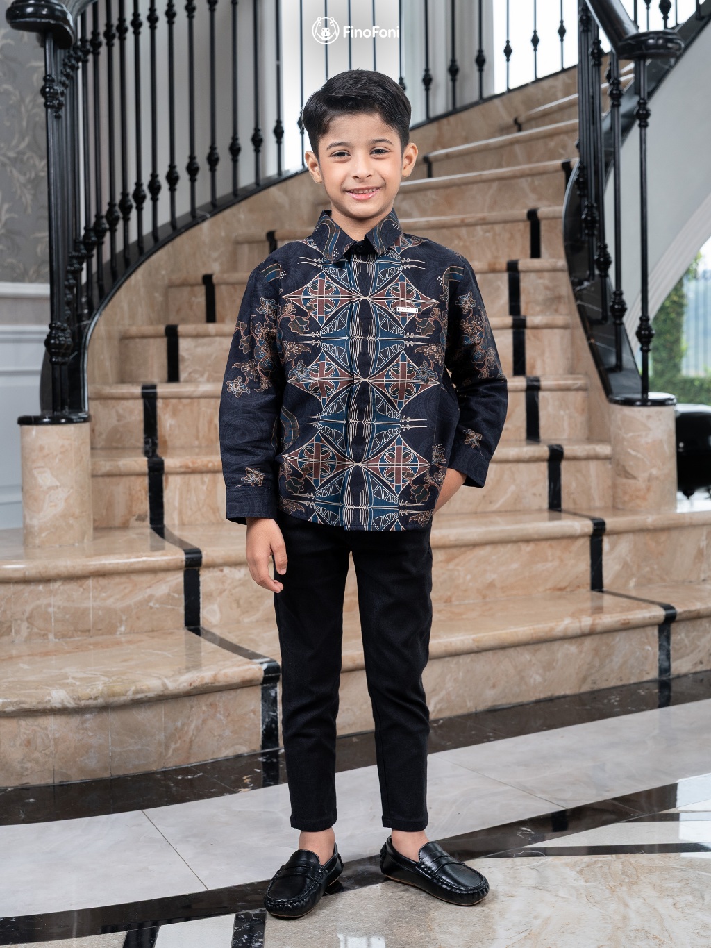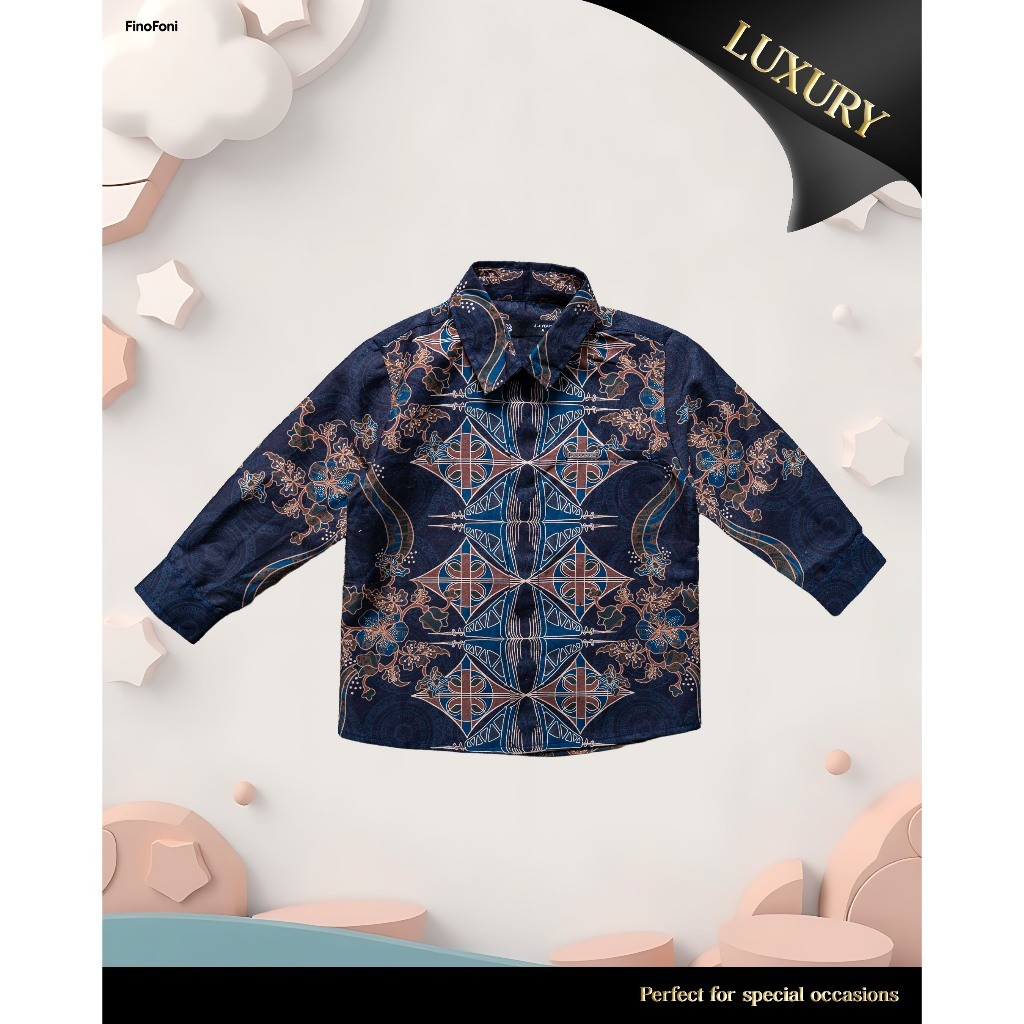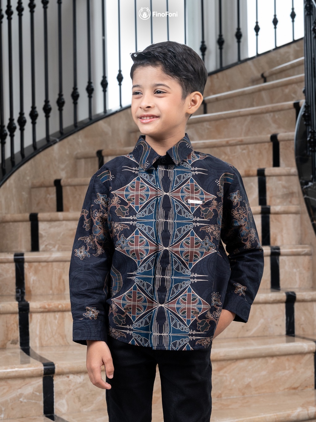 Laskala x FinoFoni Semanggi Navy Kemeja Batik Anak Laki-laki Lengan Panjang