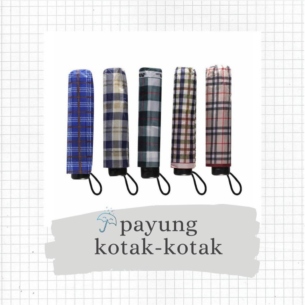 TABASA Payung Lipat Kotak Kotak Warna Warni Korea 8 Jari Kuat Kokoh