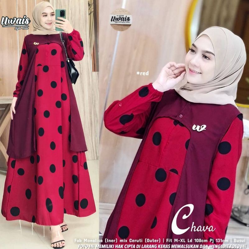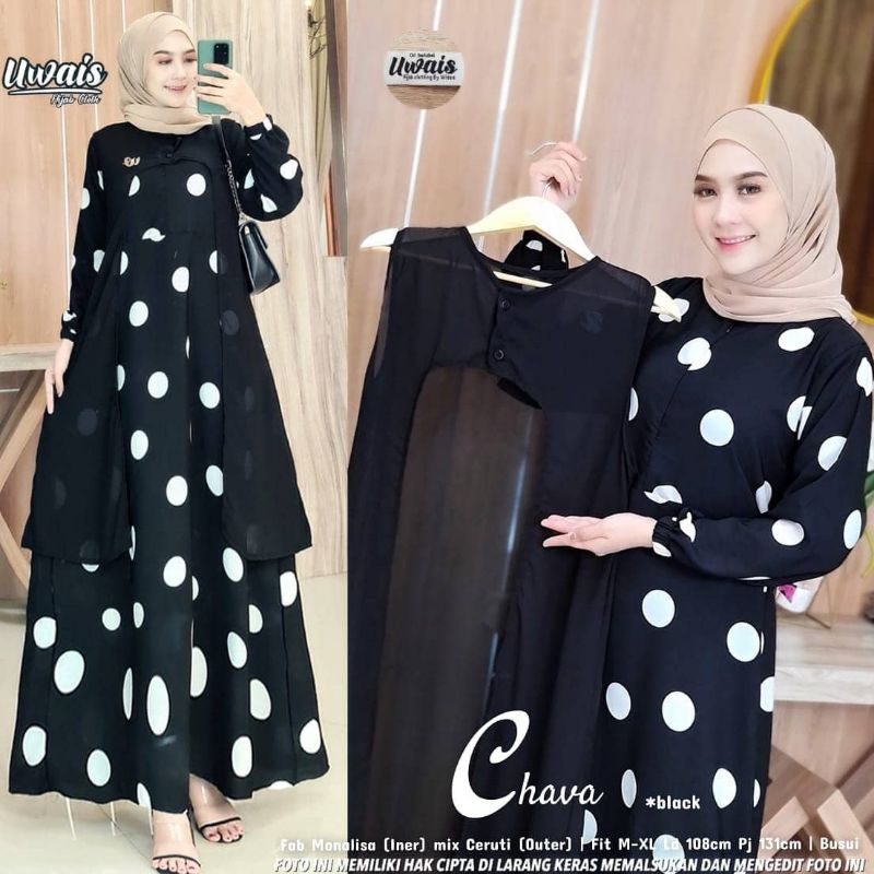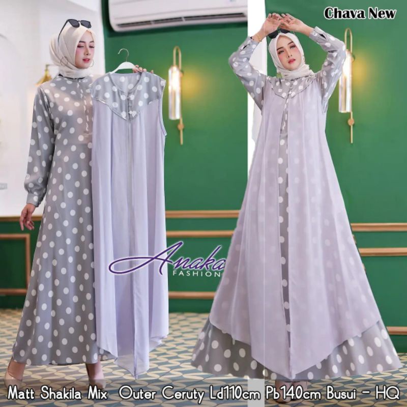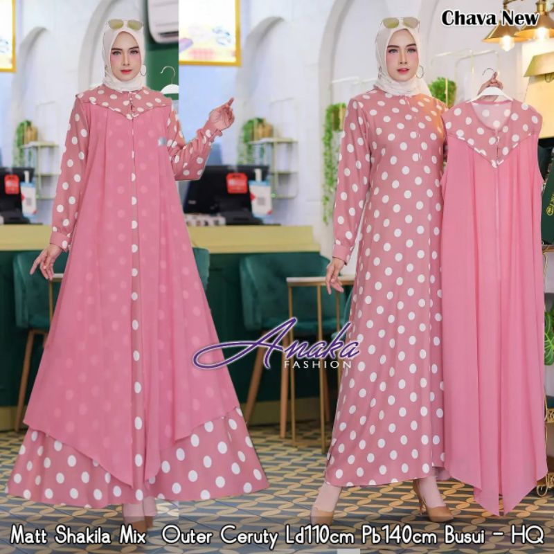 Cod Chava maxy/baju muslim/dress pesta/gamis ceruty motif polkadot/gamis outer pisah/gamis terbaru