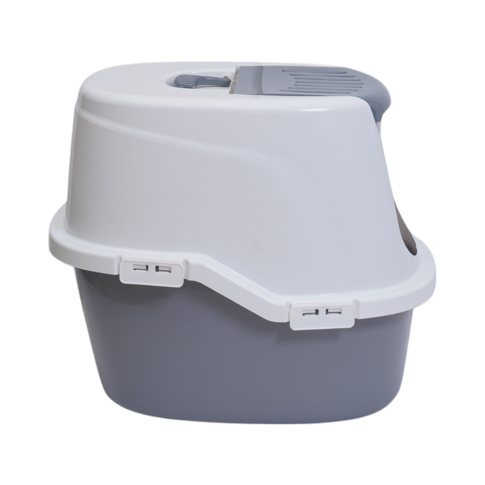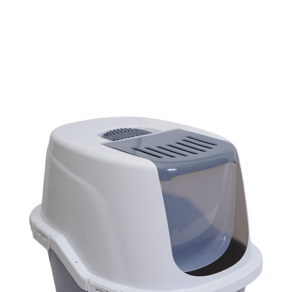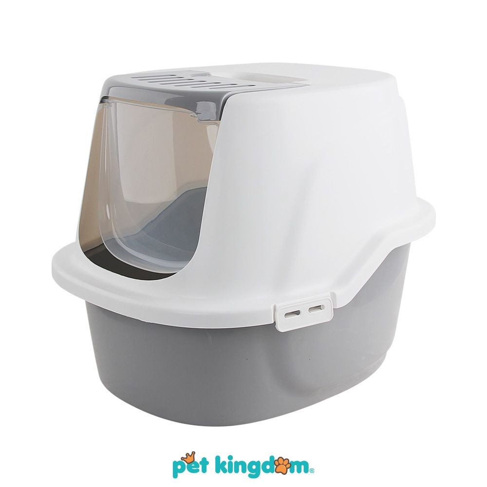 Pet Kingdom Pawise 59x47.5x47.5 cm Hooded Kitty Toilet Kucing - Abu-Abu/Putih Kotak Pasir Tempat Pup Wadah Feses Kebersihan Peliharaan