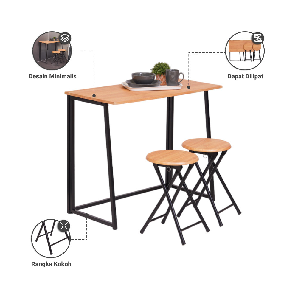 Selma Set Meja Makan Lipat 2 Kursi - Hitam/Cokelat Oak Dining Table Meja Makan Minimalis Ruang Makan Dinner Table Estetik Modern Elegan