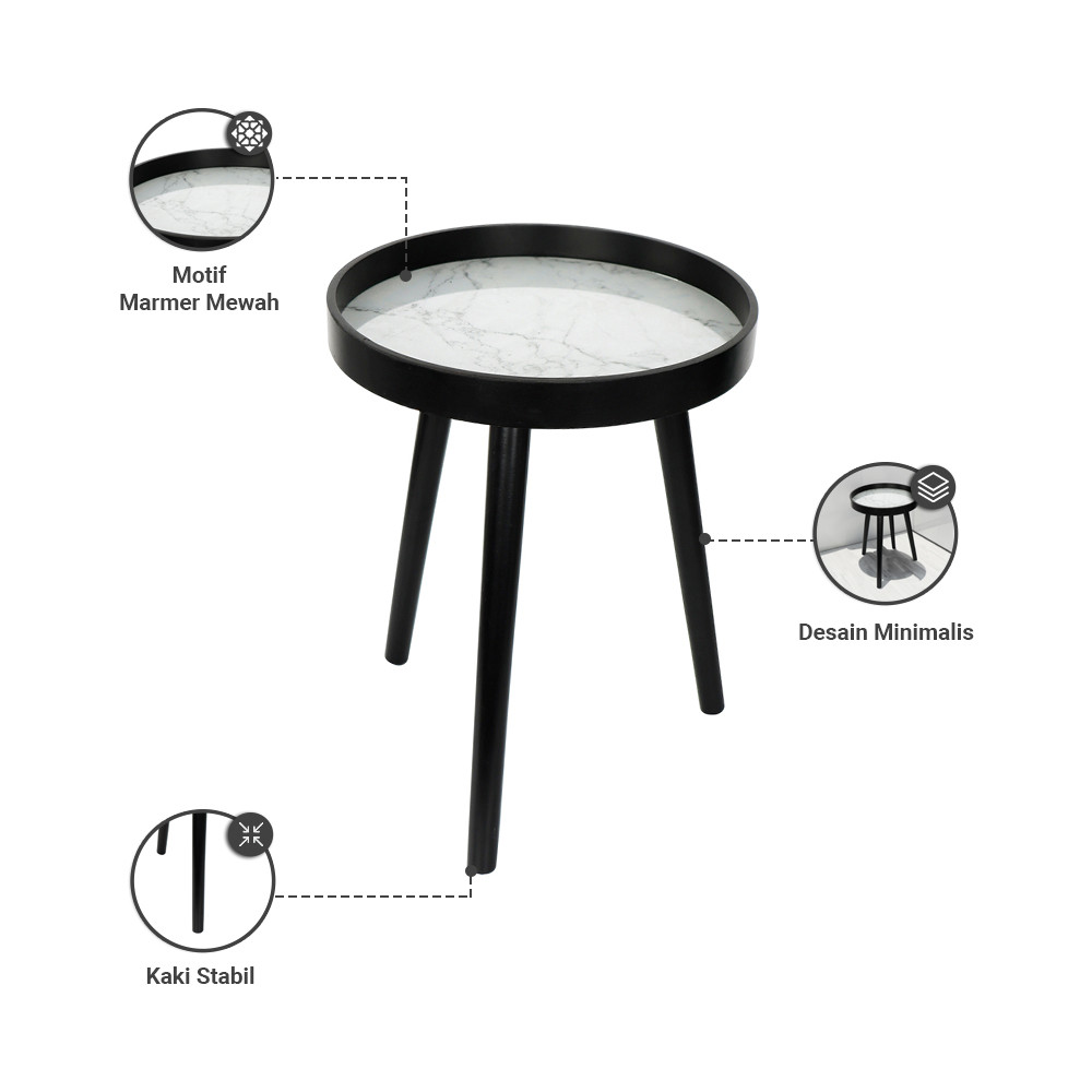 Selma Ribel Meja Sisi Marbel End Table Meja Kecil Aesthetic Meja Samping Serbaguna Small Table