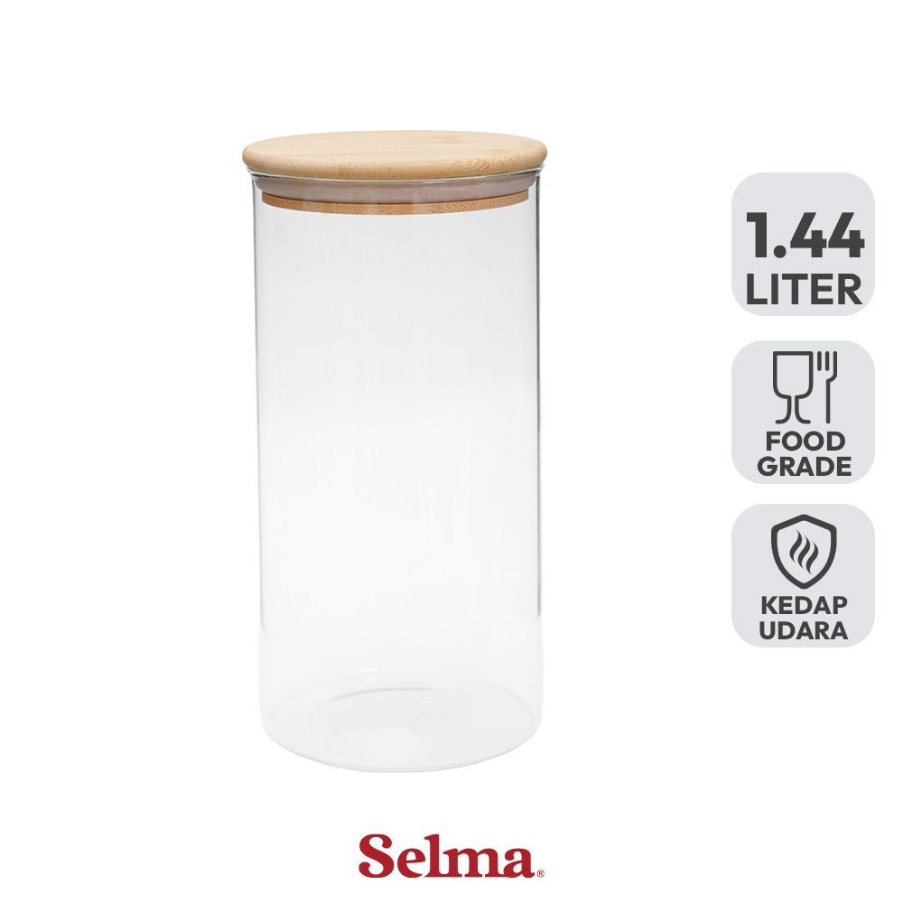 Selma Jilly Stoples Kaca 1.44 ltr Transparan - Cokelat Toples Jar Food Container Setoples Wadah Penyimpanan Kedap Udara