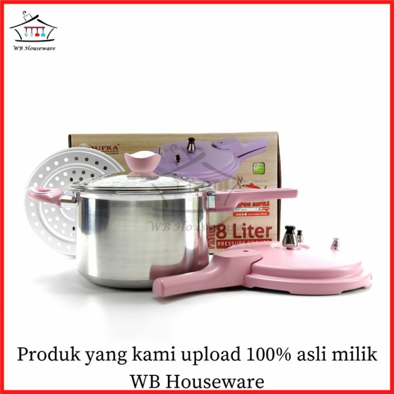 Panci presto 8Liter SUPRA Pastel pink / pressure cooker / kukusan / pengukus