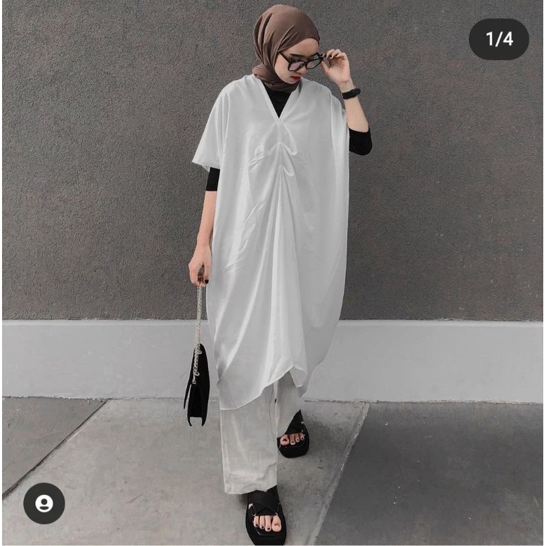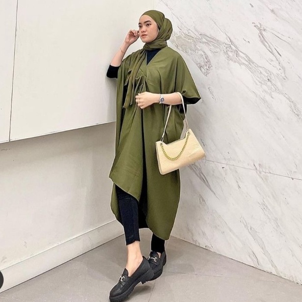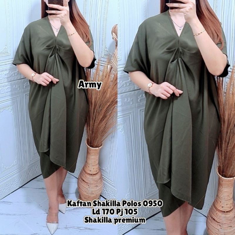Kaftan 2227 - Tunik Midi - Ukuran Jumbo - Bahan Shakila Polos 0950 - Fashion Muslim