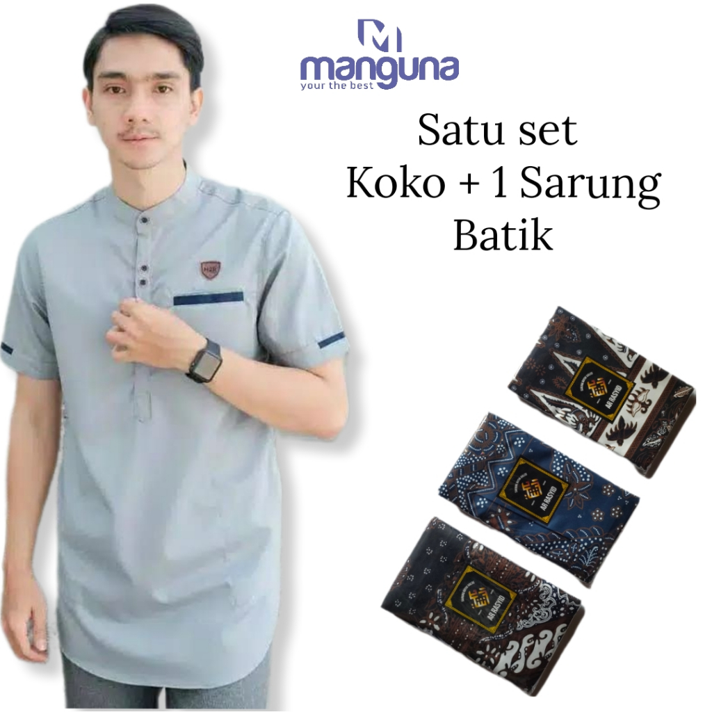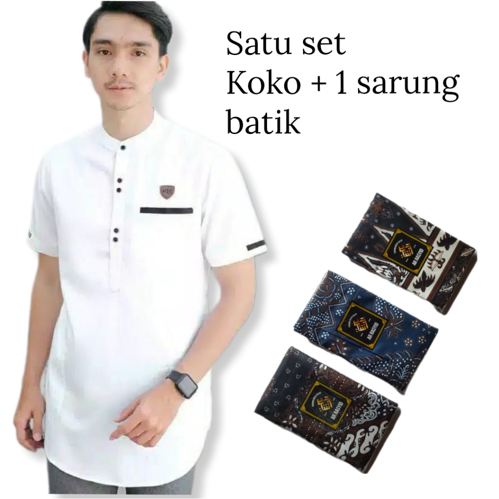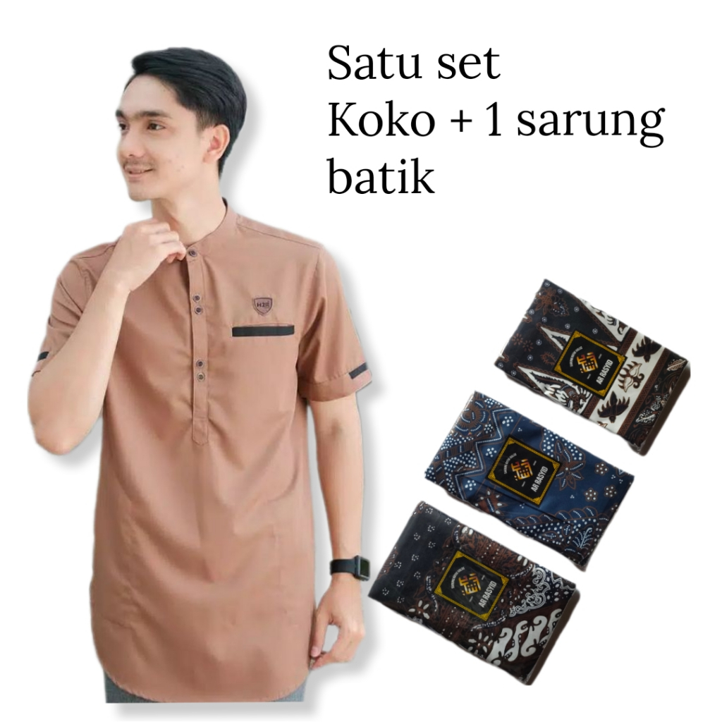 SATU SET BAJU KOKO DAN SARUNG BATIK BAJU KOKO KURTA DEWASA DAN SARUNG BATIK BAHAN ADEM