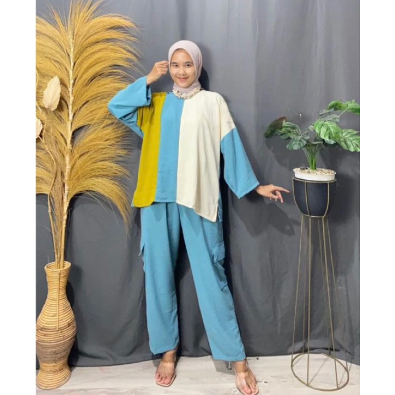 READY ONESET CARGO SALUR KOMBINASI 3 WARNA SETELAN BLASTER CELANA CARGO SETRIP SET TERBARU WANI
