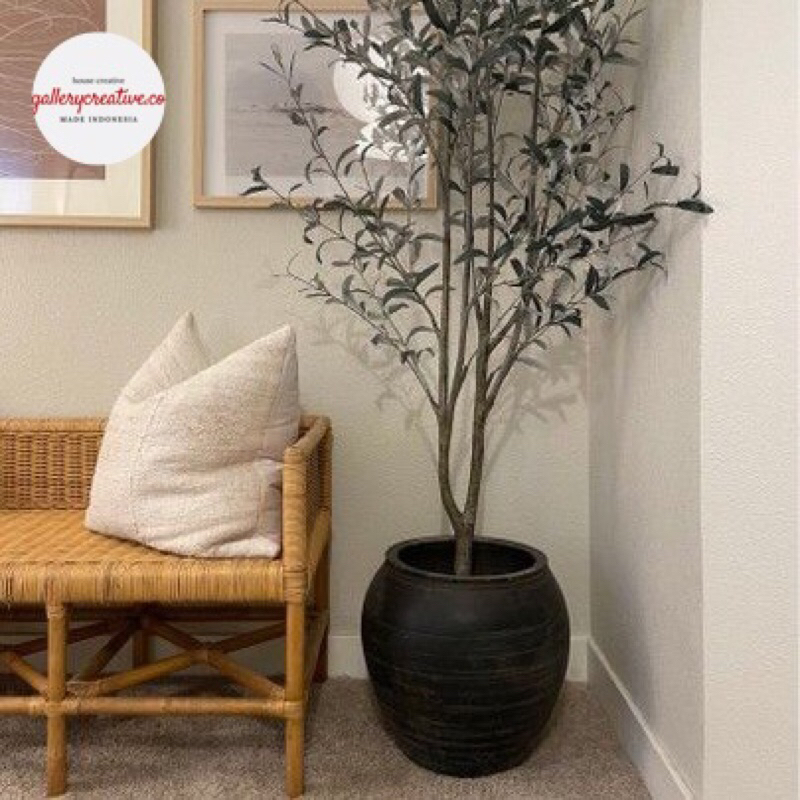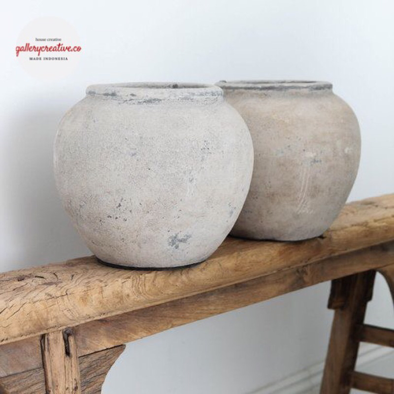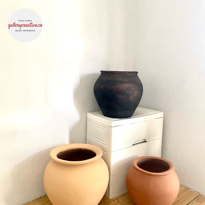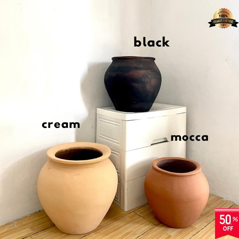 Vase bunga kering besar 35 cm premium aesthetic - guci bulat bunga besar
