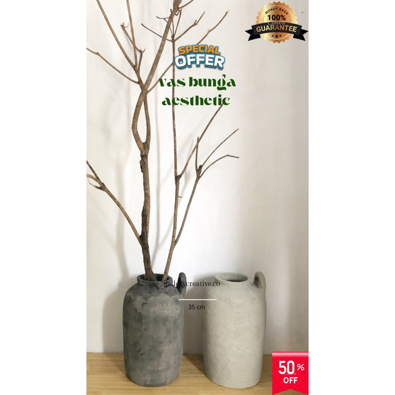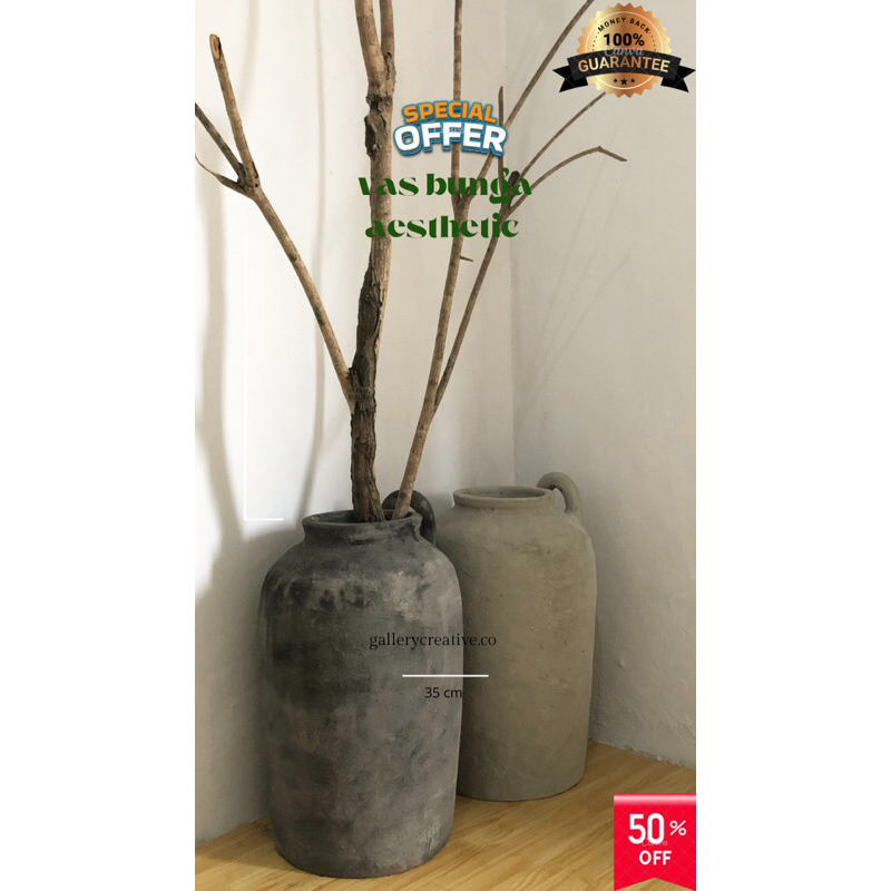 guci besar aesthetic - vas bunga premium free packing kayu