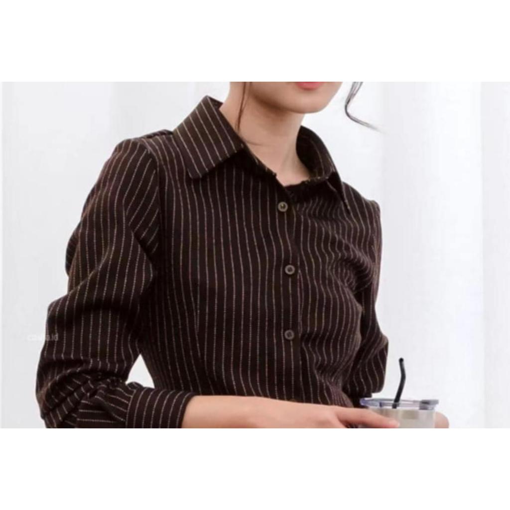 Luna Stripe Kemeja Wanita Premium Fitted - Kemeja Wanita Salur Garis-Garis Premium Terbaru
