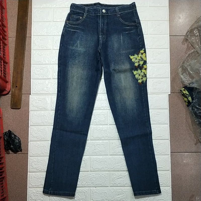 [CUCI GUDANG] Celana Jeans Panjang Wanita Murah Motif Bunga Korean Fashion Gaeolnaeol BARU NEW