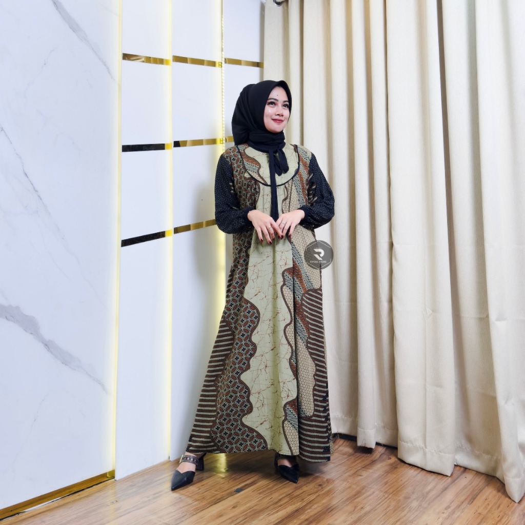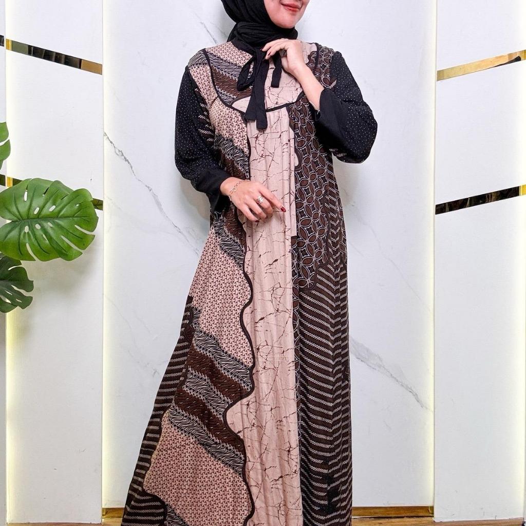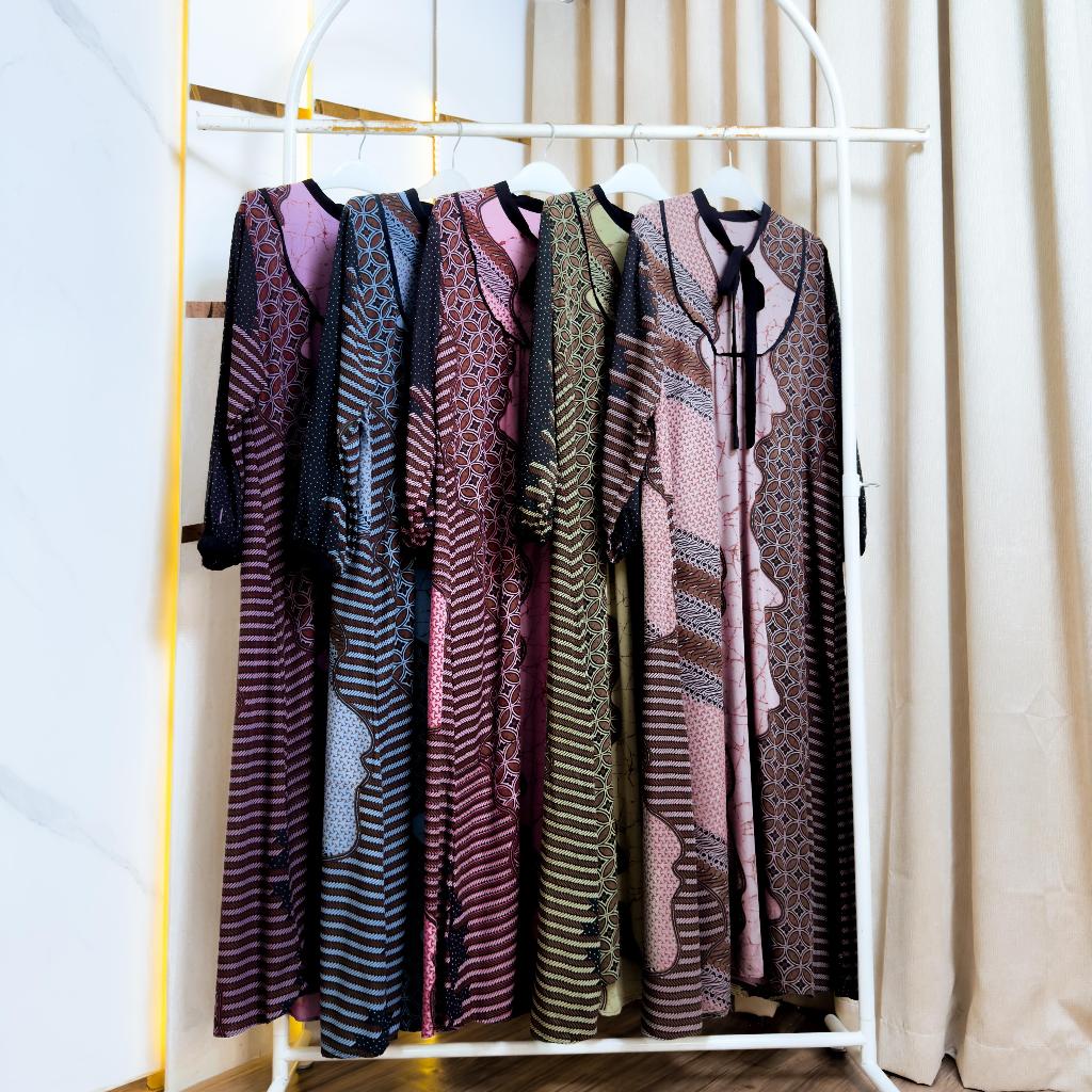 Rifina Store Kaluna Dress Rayon Premium Motif Batik Klasik Busui Bumil Friendly Adem Nyaman