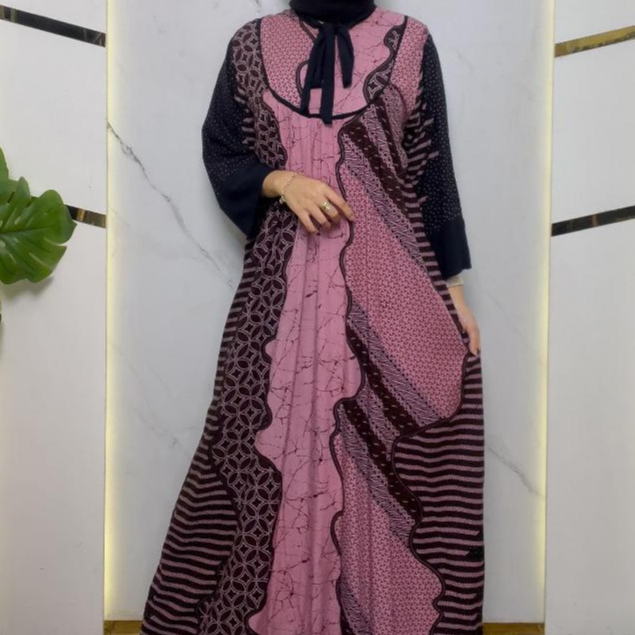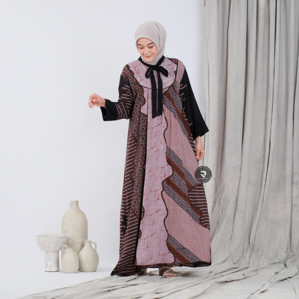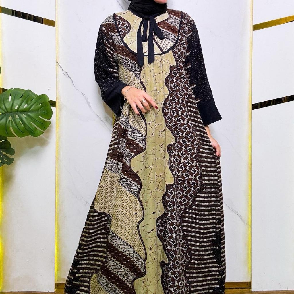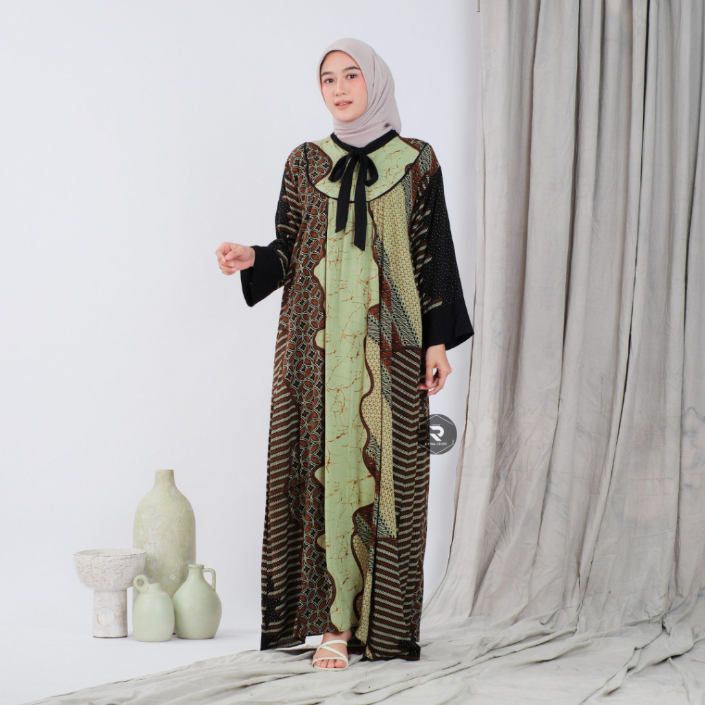 Rifina Store Kaluna Dress Rayon Premium Motif Batik Klasik Busui Bumil Friendly Adem Nyaman