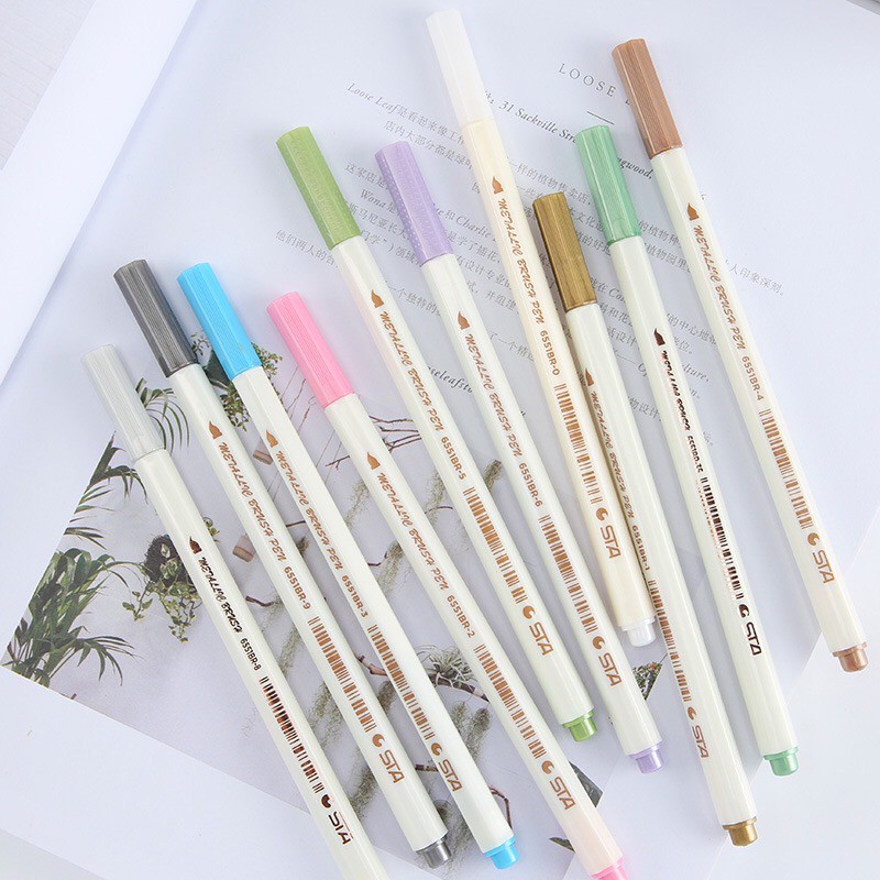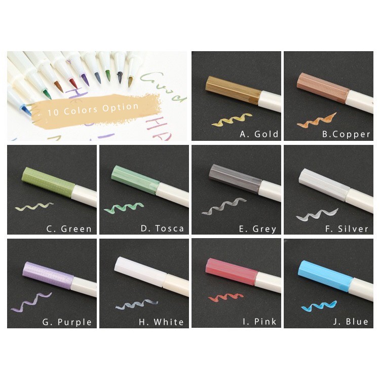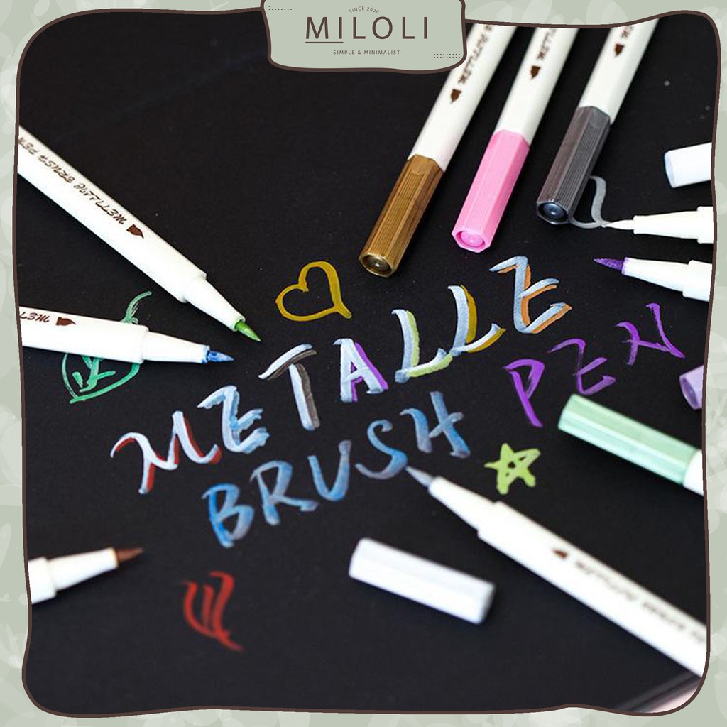 [MILOLI] Metallic BRUSH Pen Spidol Warna Pena Kuas Metalik Kaligrafi Dekor - D0001
