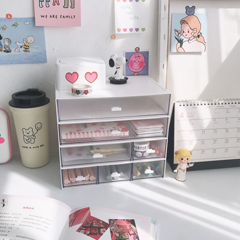 [MILOLI] Mini Drawer Storage Box Aesthetic Style Korean Desk Laci Mini Putih Desktop Drawer - F0092