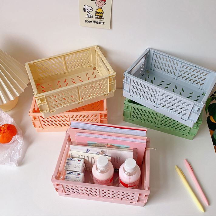 [MILOLI] Foldable Storage Pastel Color Keranjang Lipat Aesthetic Meja Korea Desk - F0096