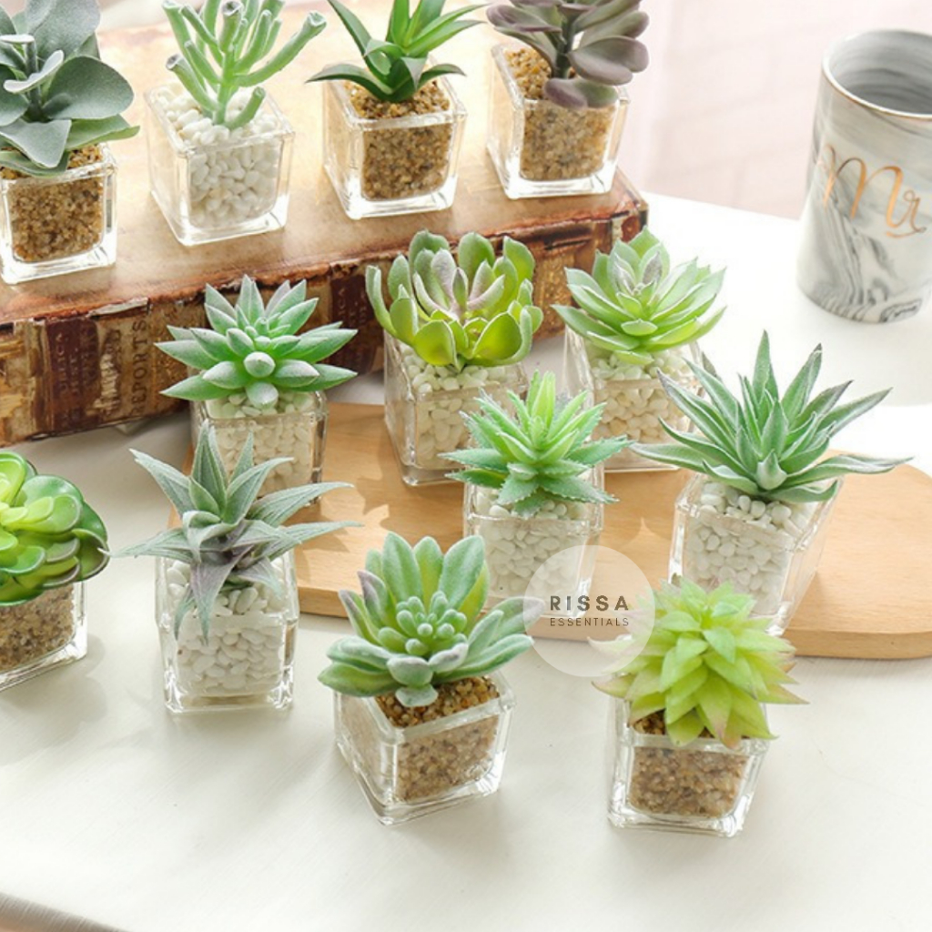 [RISSA] Mini Kaktus Palsu Pot Transparan Cactus Kecil Tanaman Palsu Dekorasi Tanaman Bunga Sintetis Dekorasi Rumah Properti Foto Prop Foto Layout Aesthetic Foto Studio Rissa Essentials