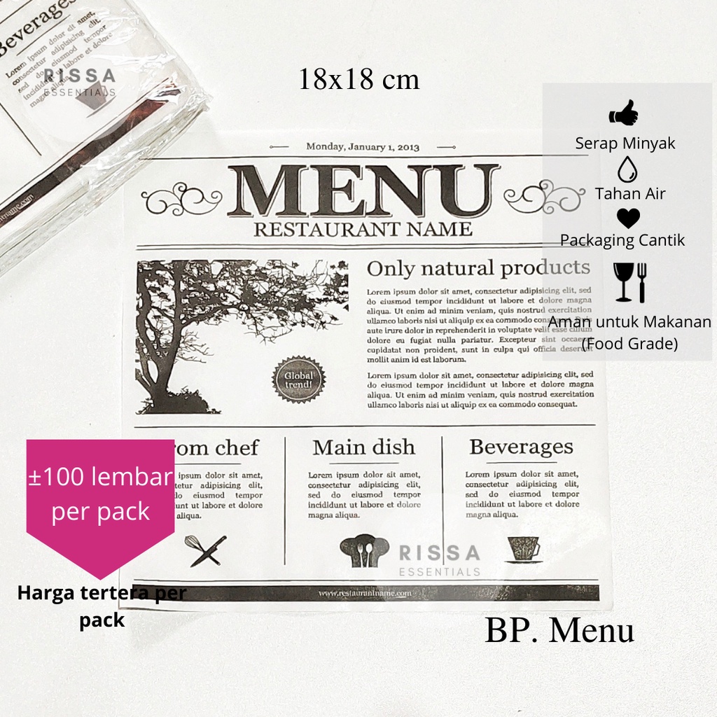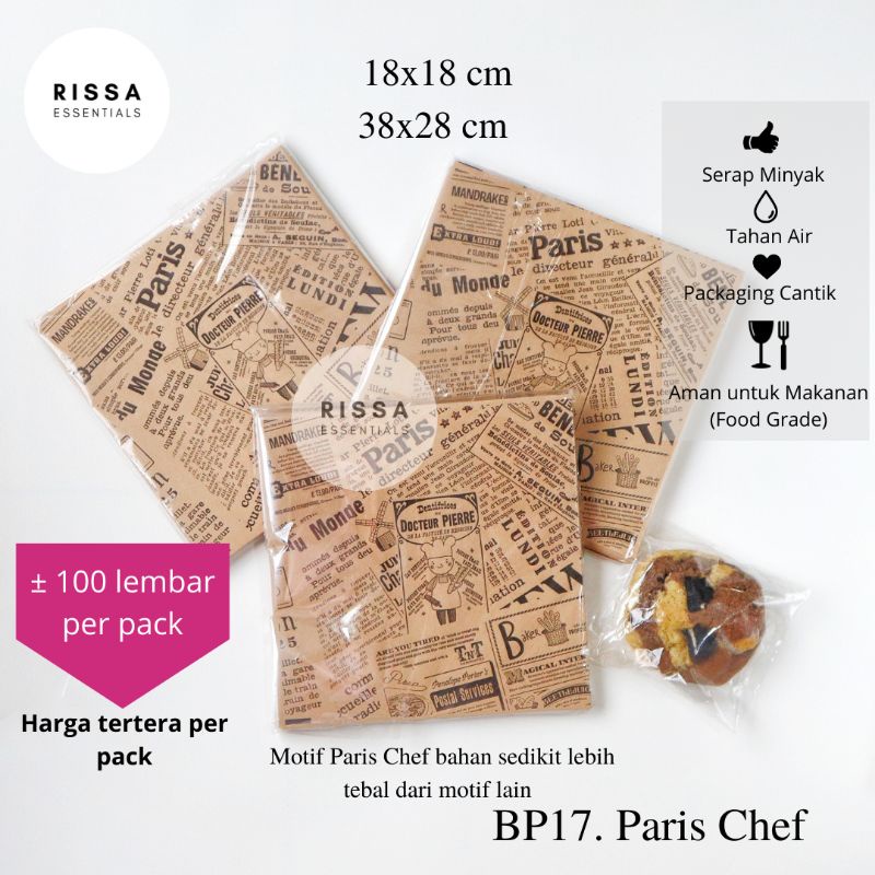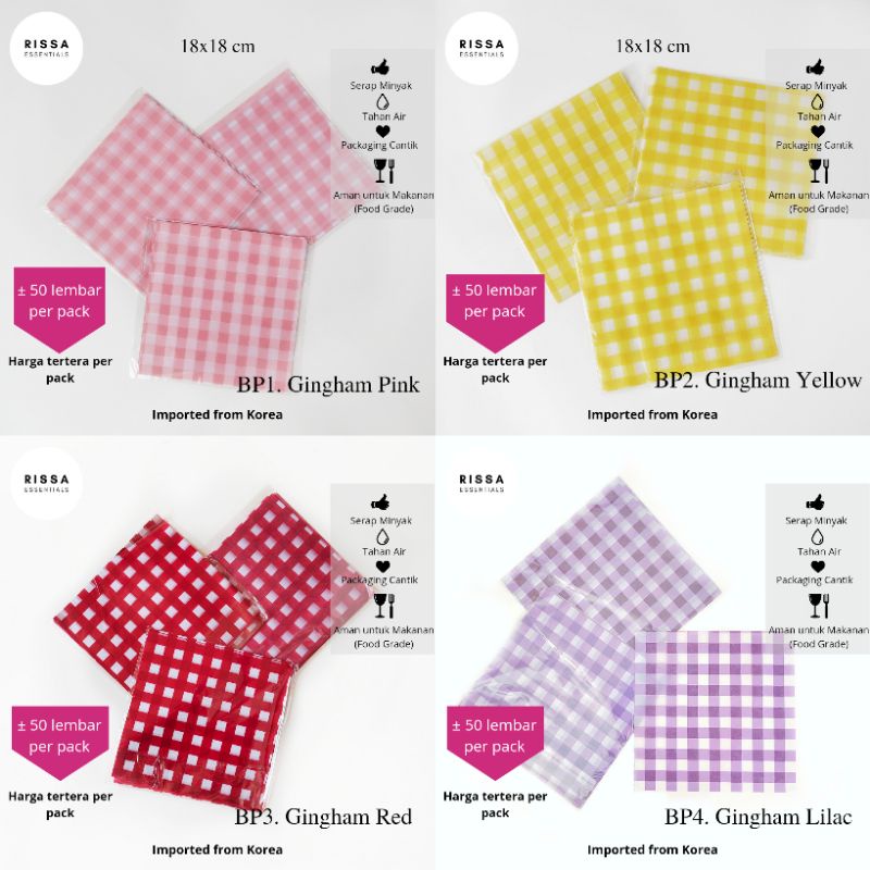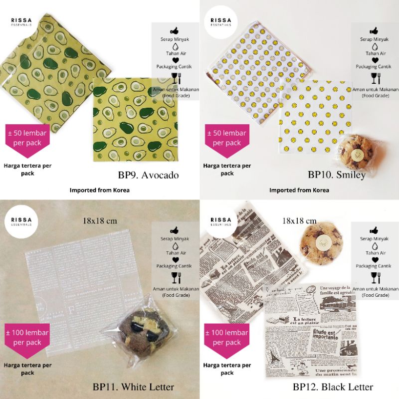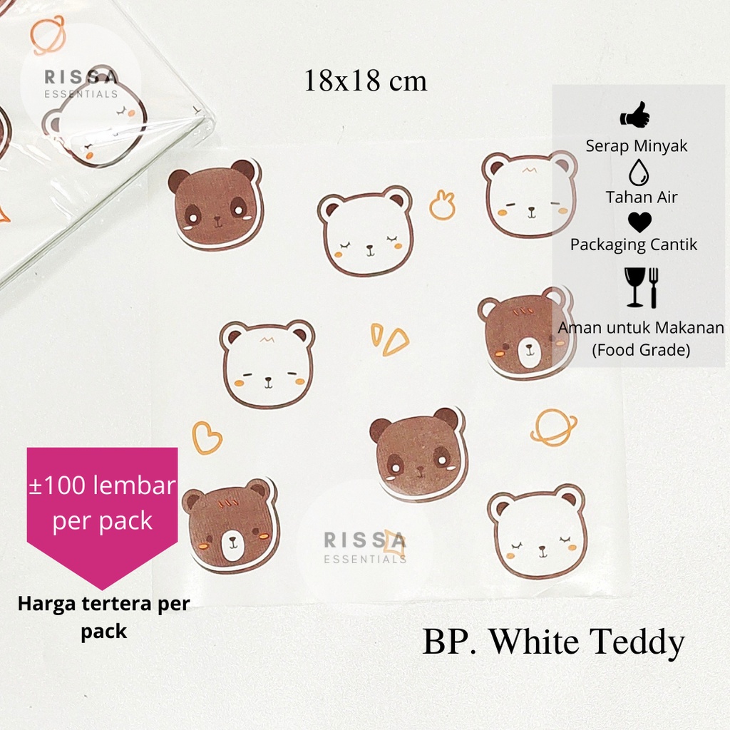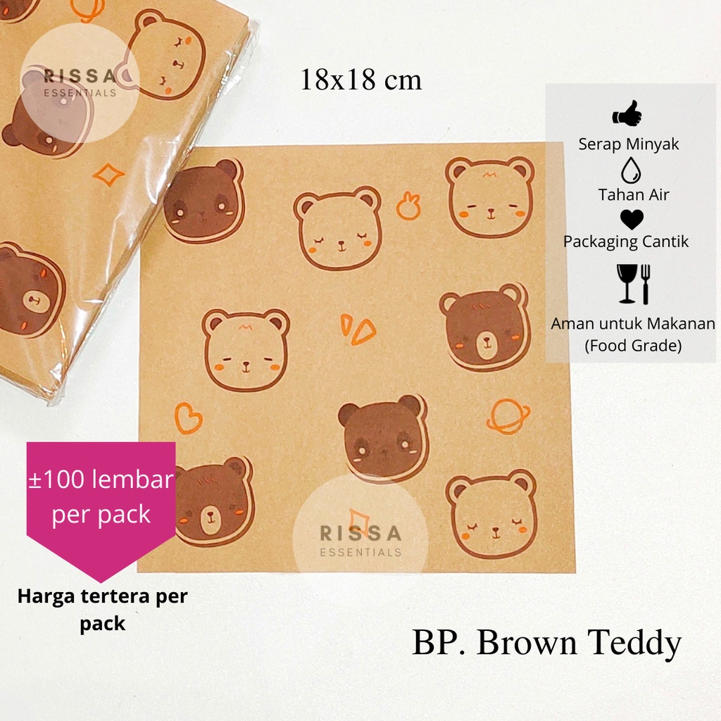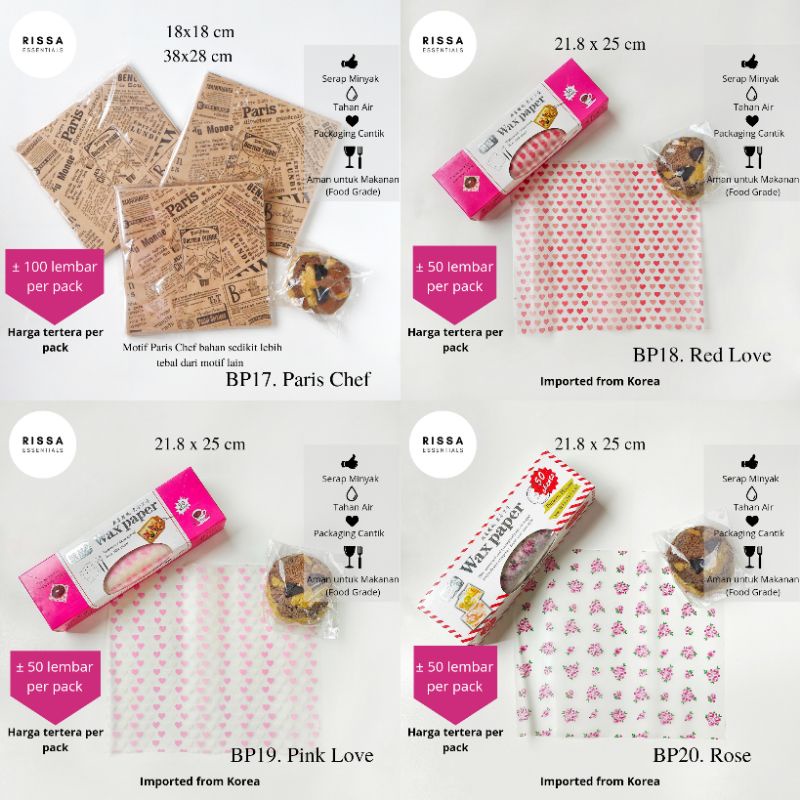 [18x18 cm] [RISSA] BAKING PAPER MOTIF KOREA (PER BUNGKUS) ANTI GREASE WAX PAPER PARCHMENT PAPER KERTAS KUE RISSA ESSENTIALS