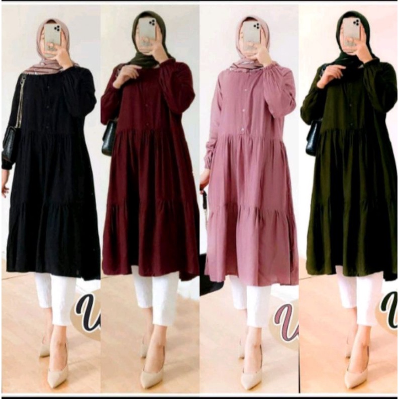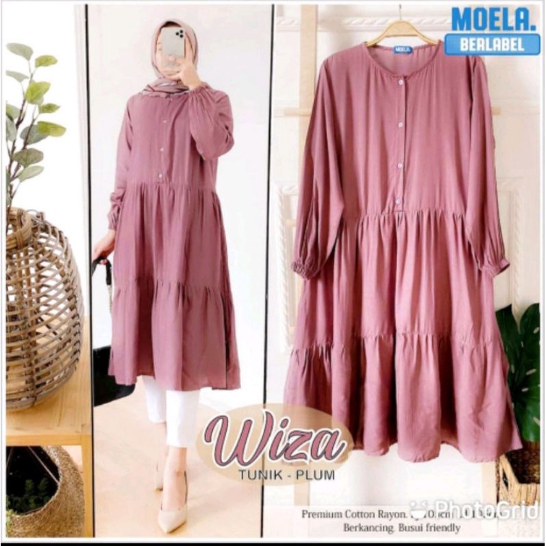 WIZA TUNIK PANJANG BUSUI FRIENDLY KATUN RAYON POLOS | BAJU MUSLIM |