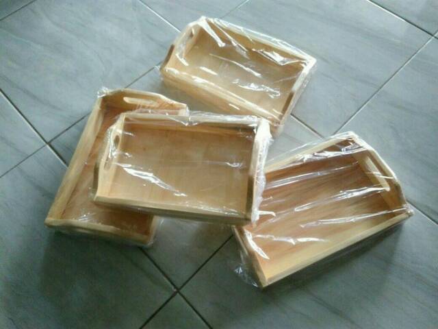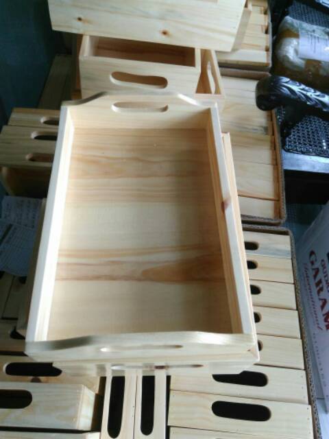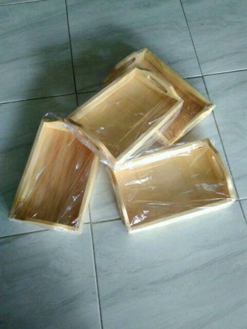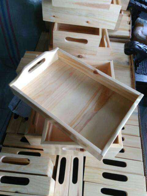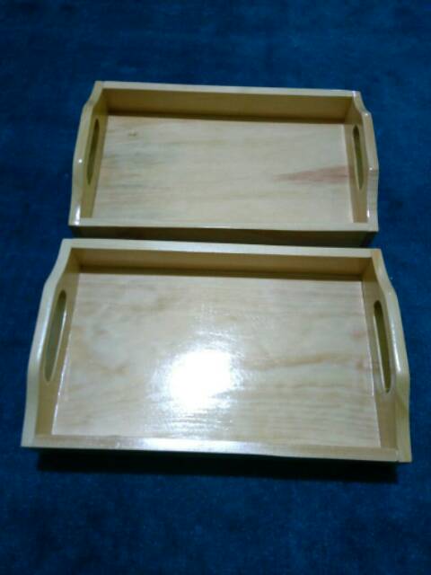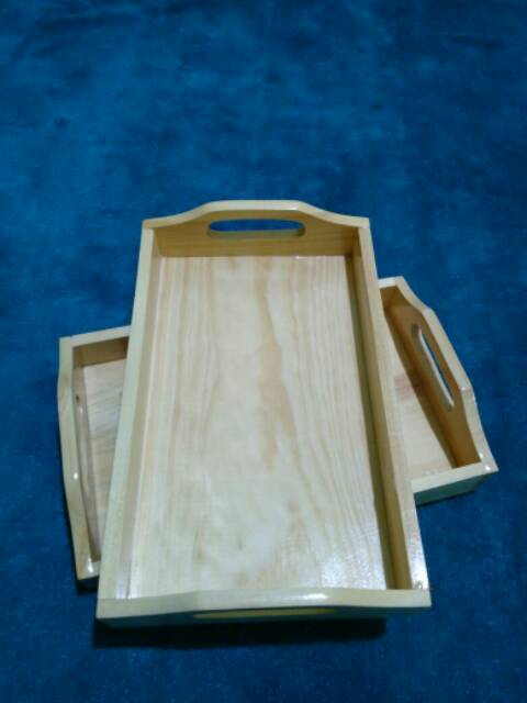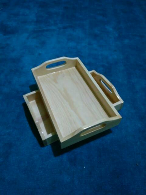 Nampan Kayu / Baki Kayu / Tray Kayu Pinus 28 x 18 pegangan melengkung