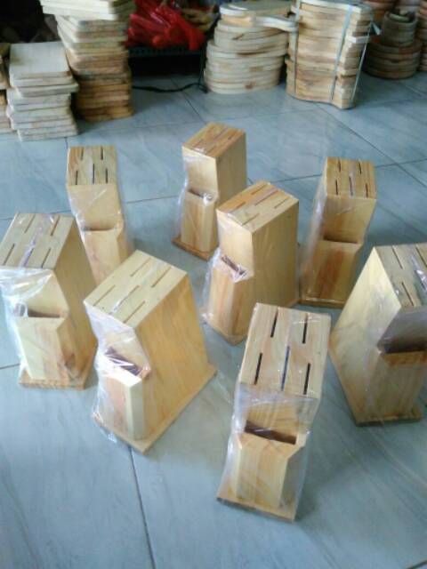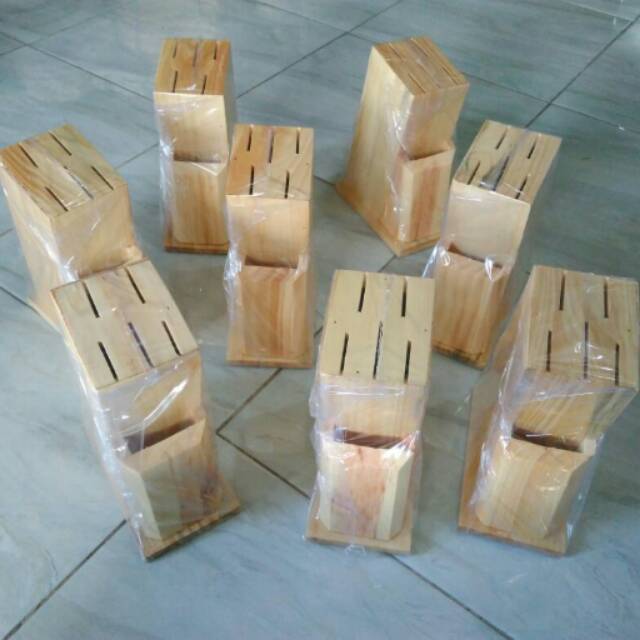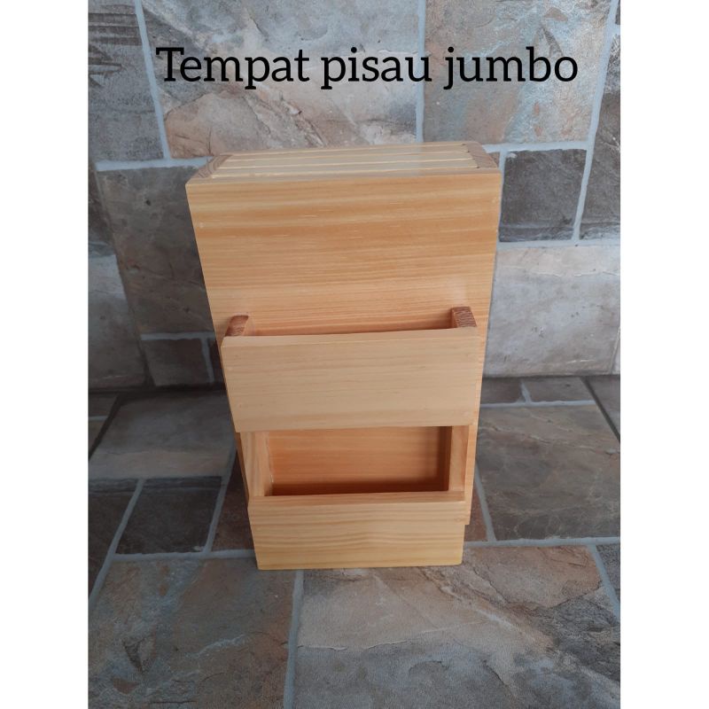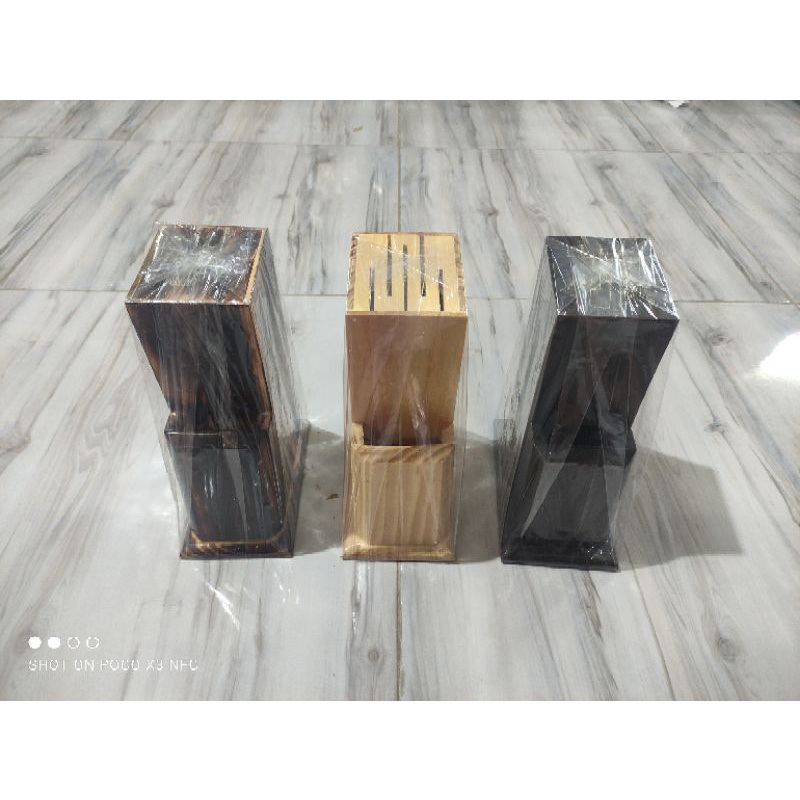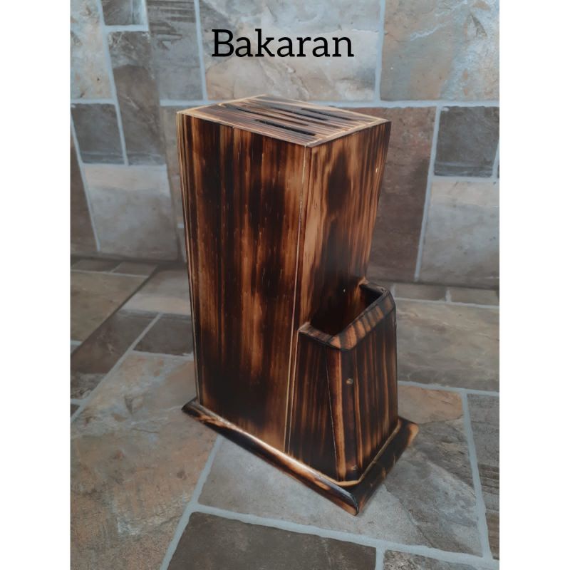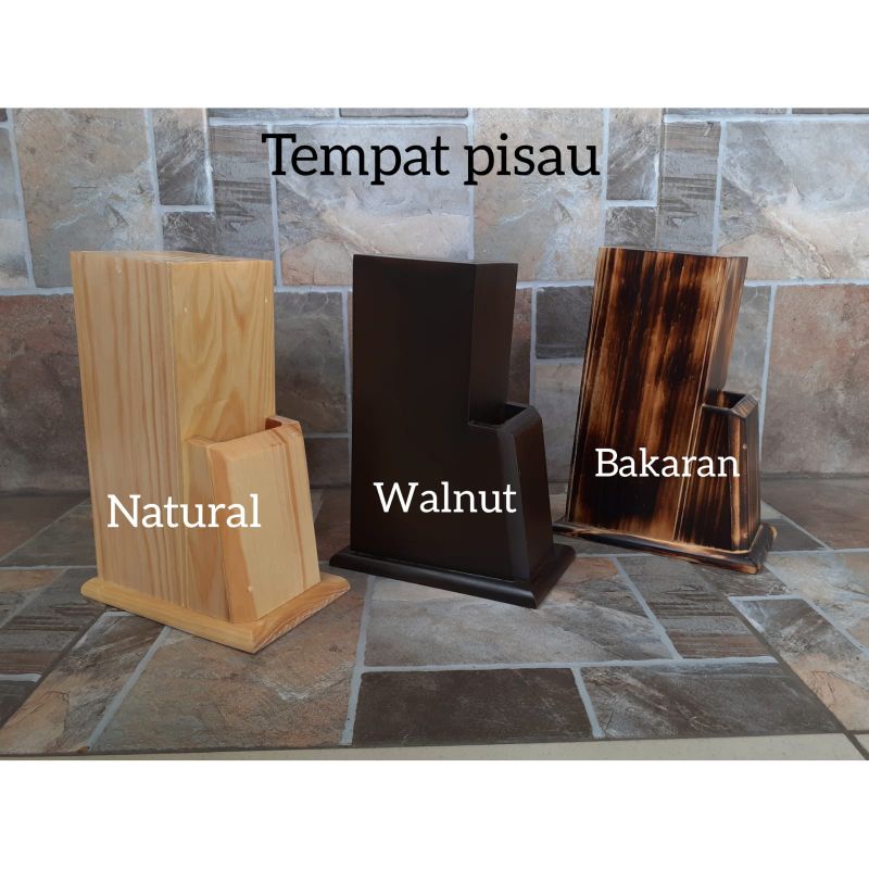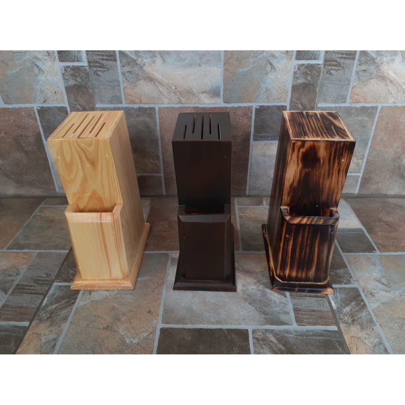 Tempat Pisau / Wadah Pisau dari Kayu Pinus - warna NATURAL, WALNUT, BAKARAN