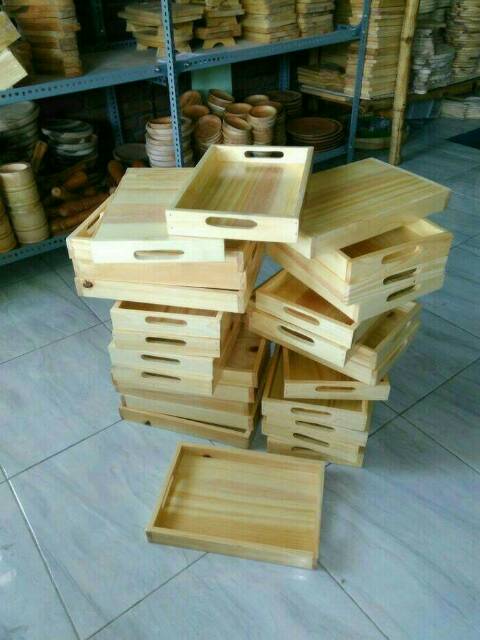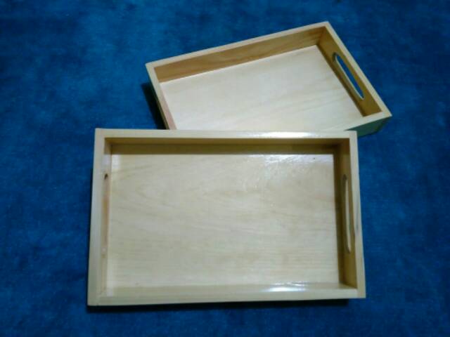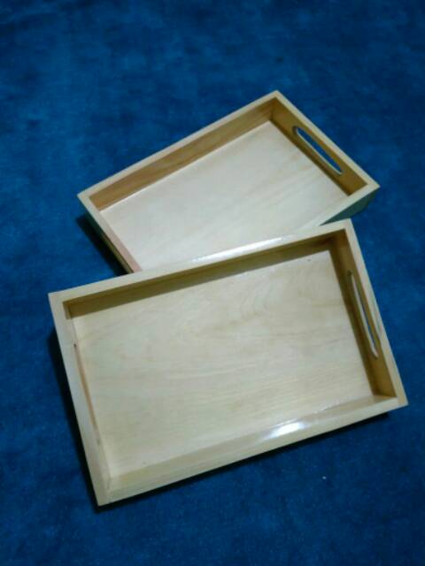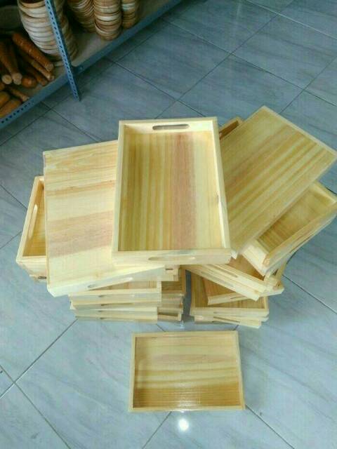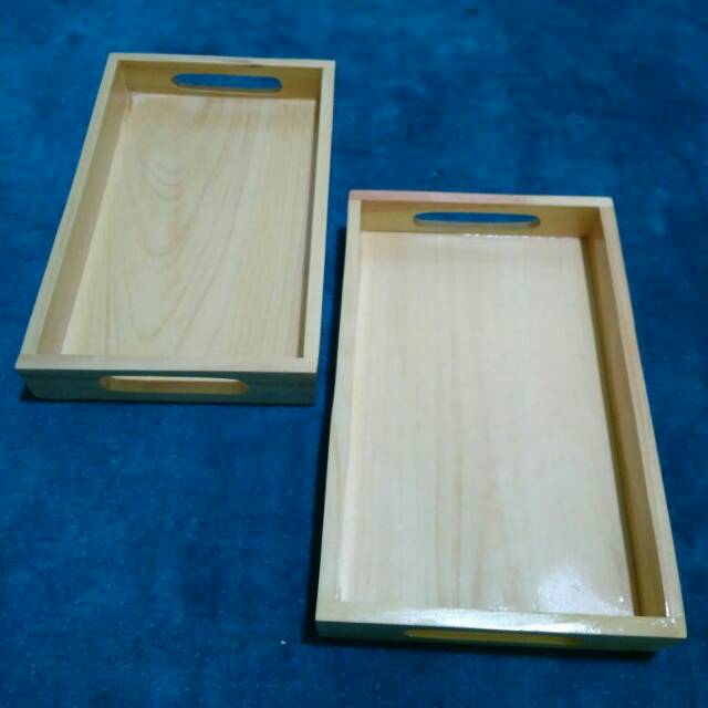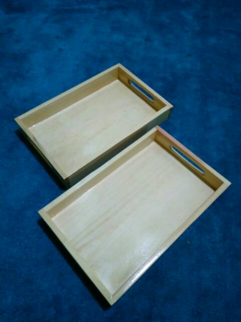 Nampan Kayu / Baki Kayu / Tray Kayu Pinus 28 x 18 cm pegangan datar