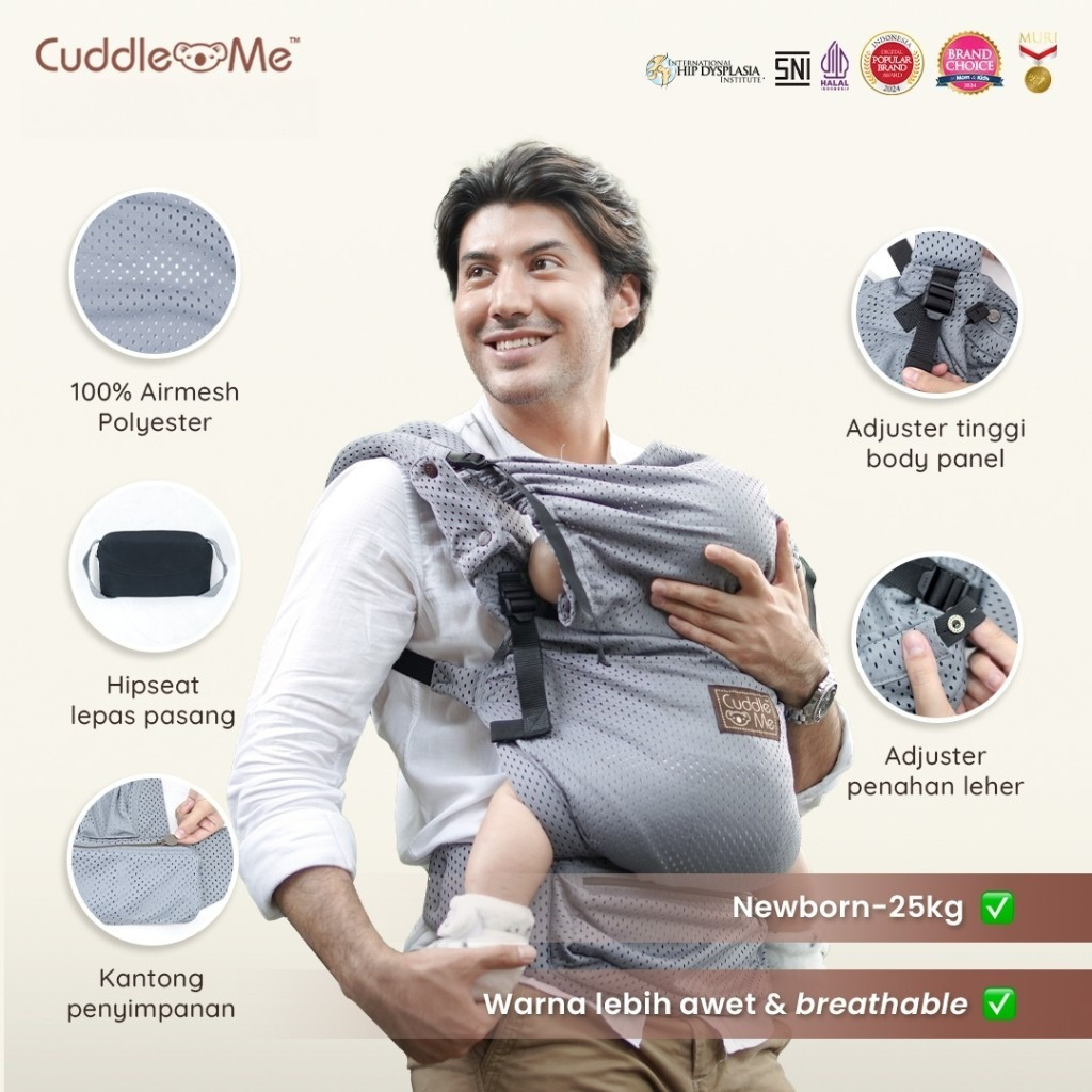 Gendongan Bayi SSC CuddleMe Ultimo Aero Navy – Ergonomis, Newborn, M-Shape, Anti Gerah, Carrier Depan Belakang