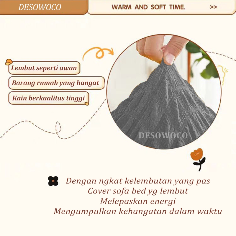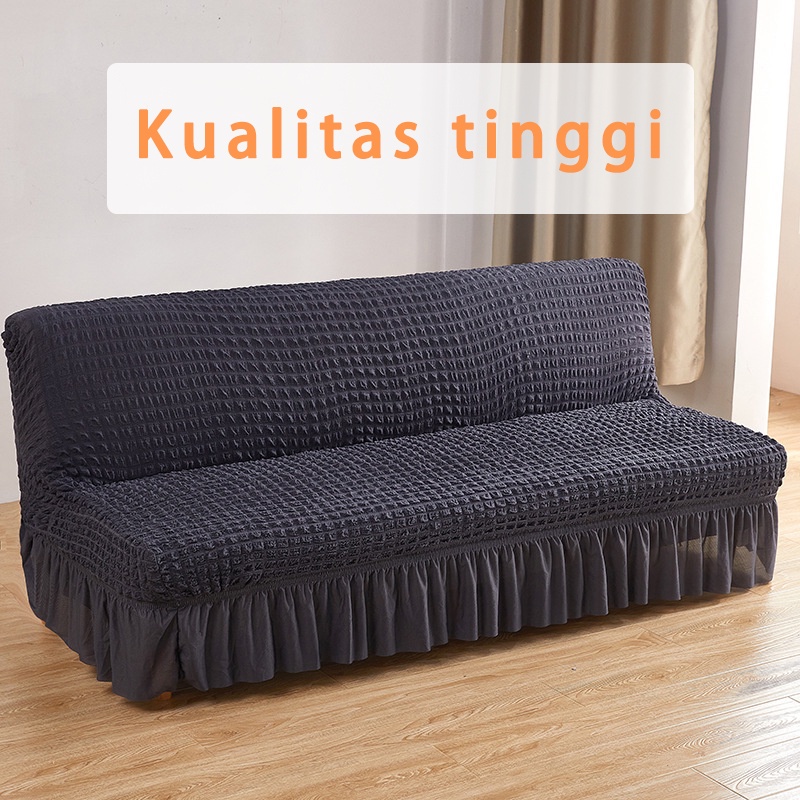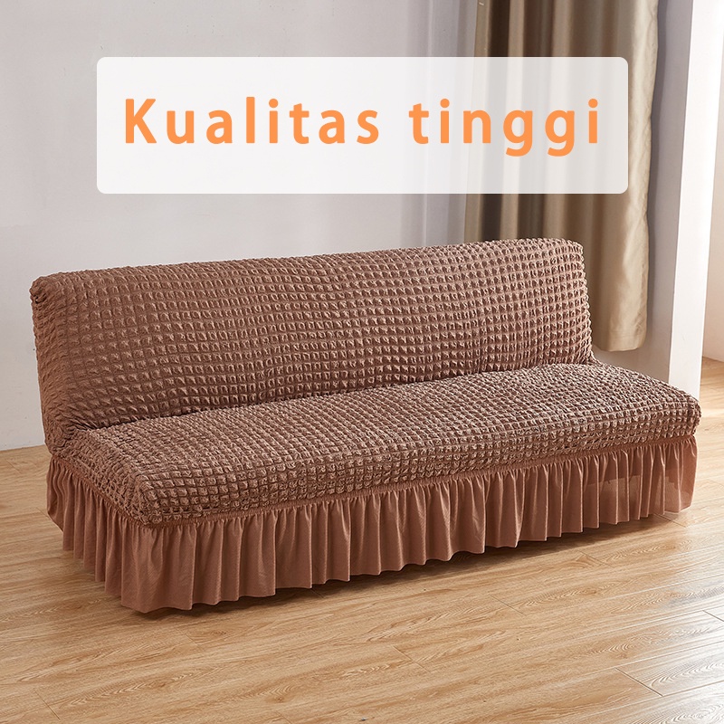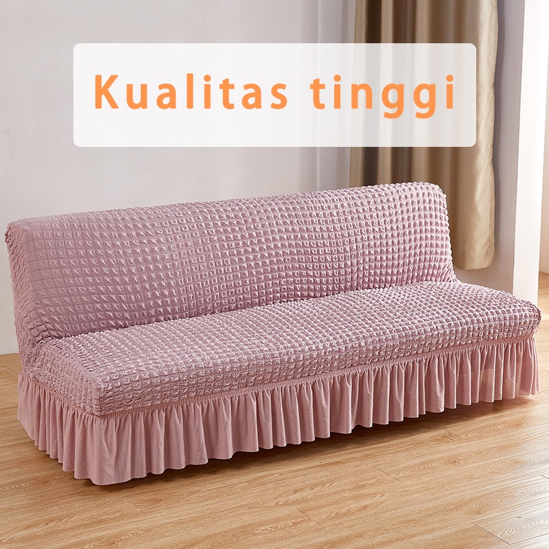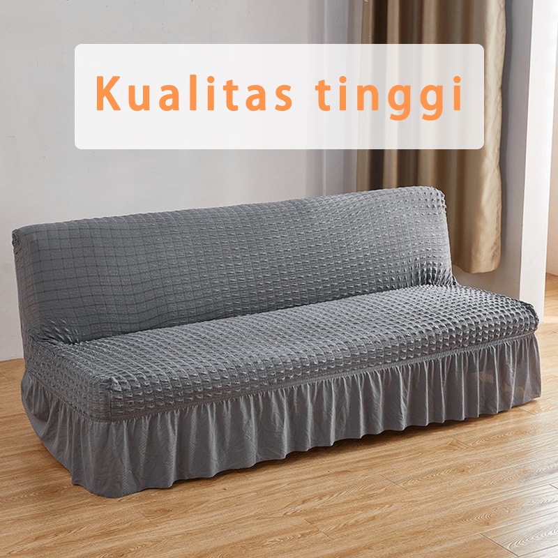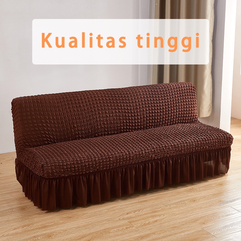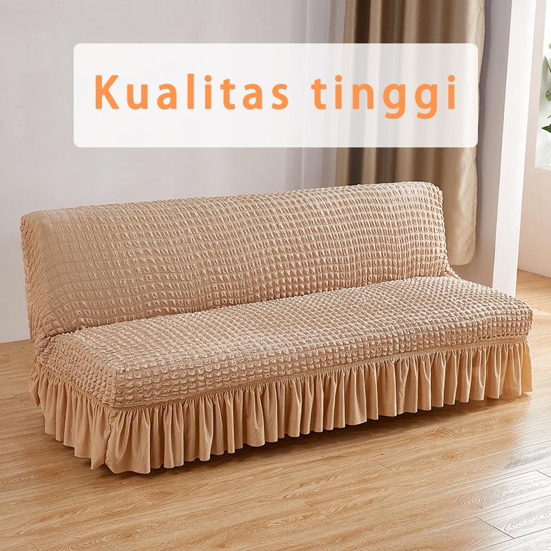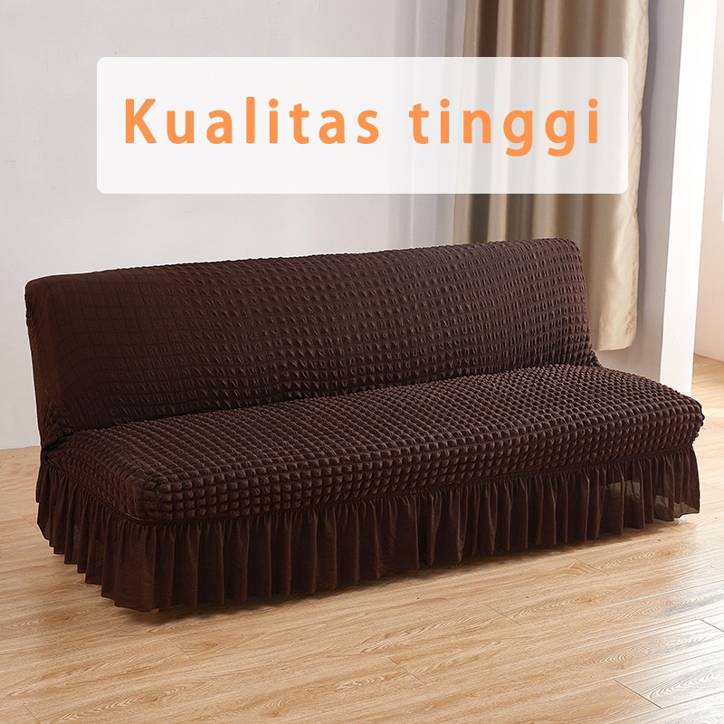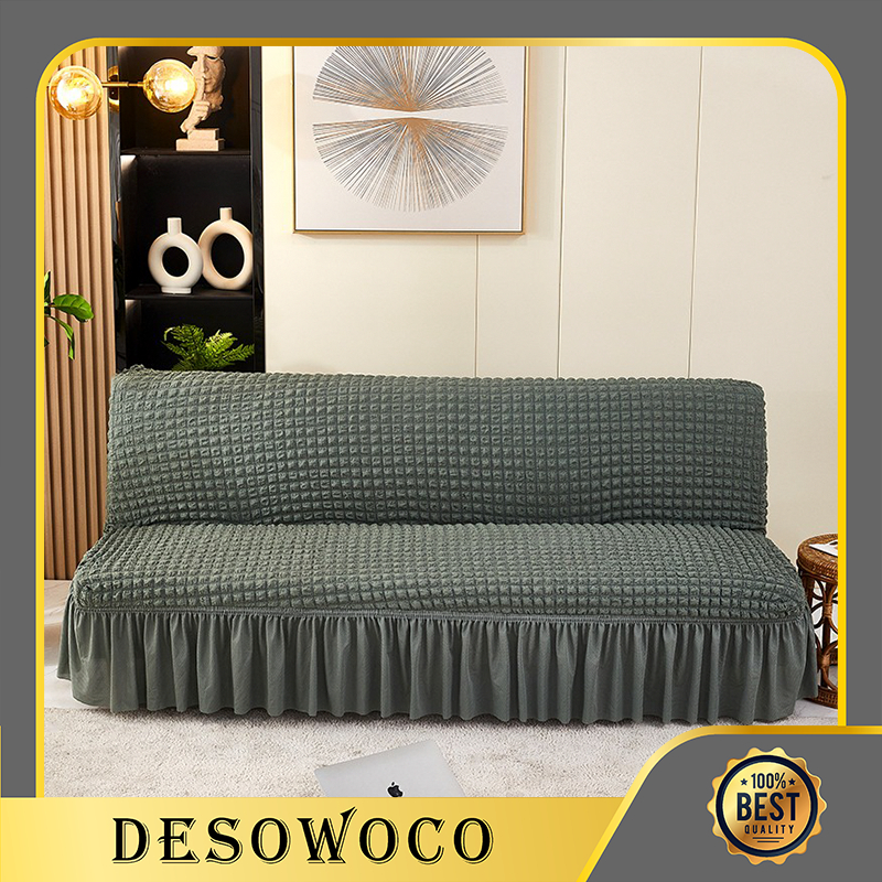 DESOWOCO Cover Sofa Bed Sarung Sofa Bed Elastic Sofa Bed Cover With Skirt / Penutup Sarung Alas SofaBed Elastis Tebal Polos Renda