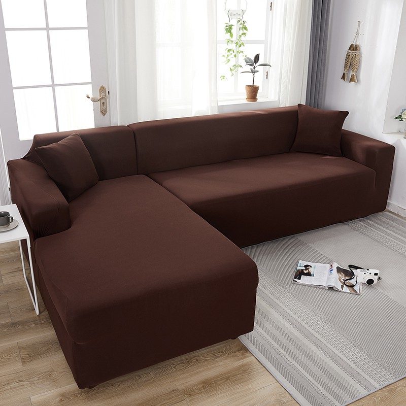 DESOWOCO Elastis L Shape Cover Sofa Sarung Sofa Pattern Polos Steater 1 2 3 4 Cover sofa